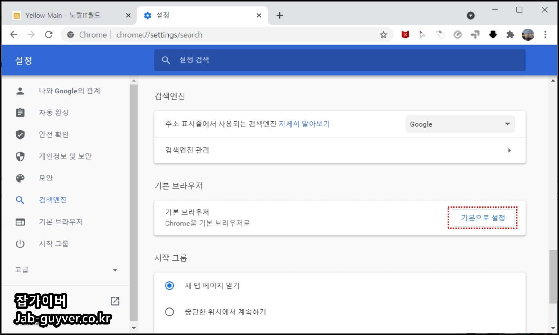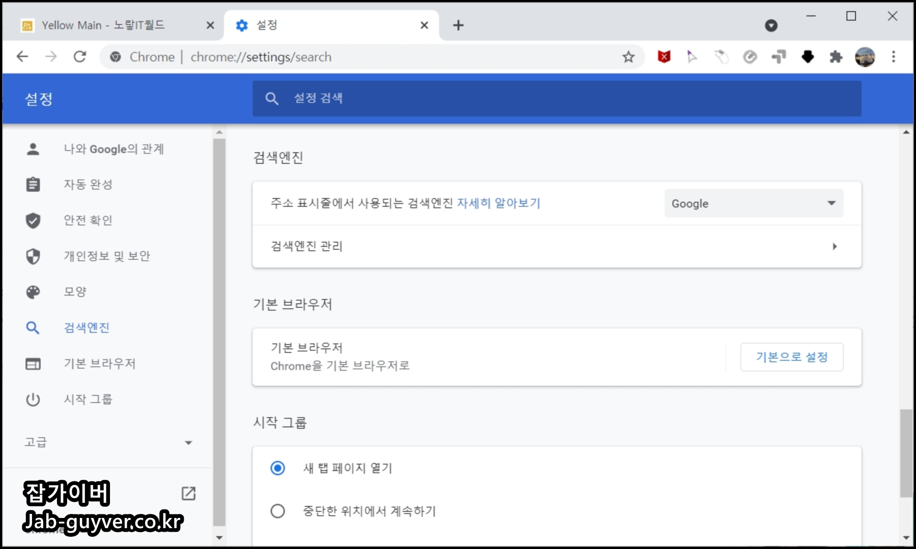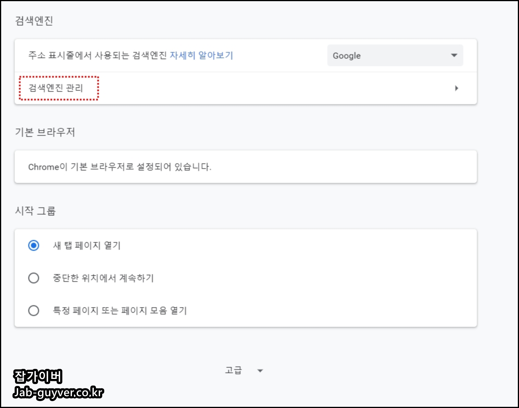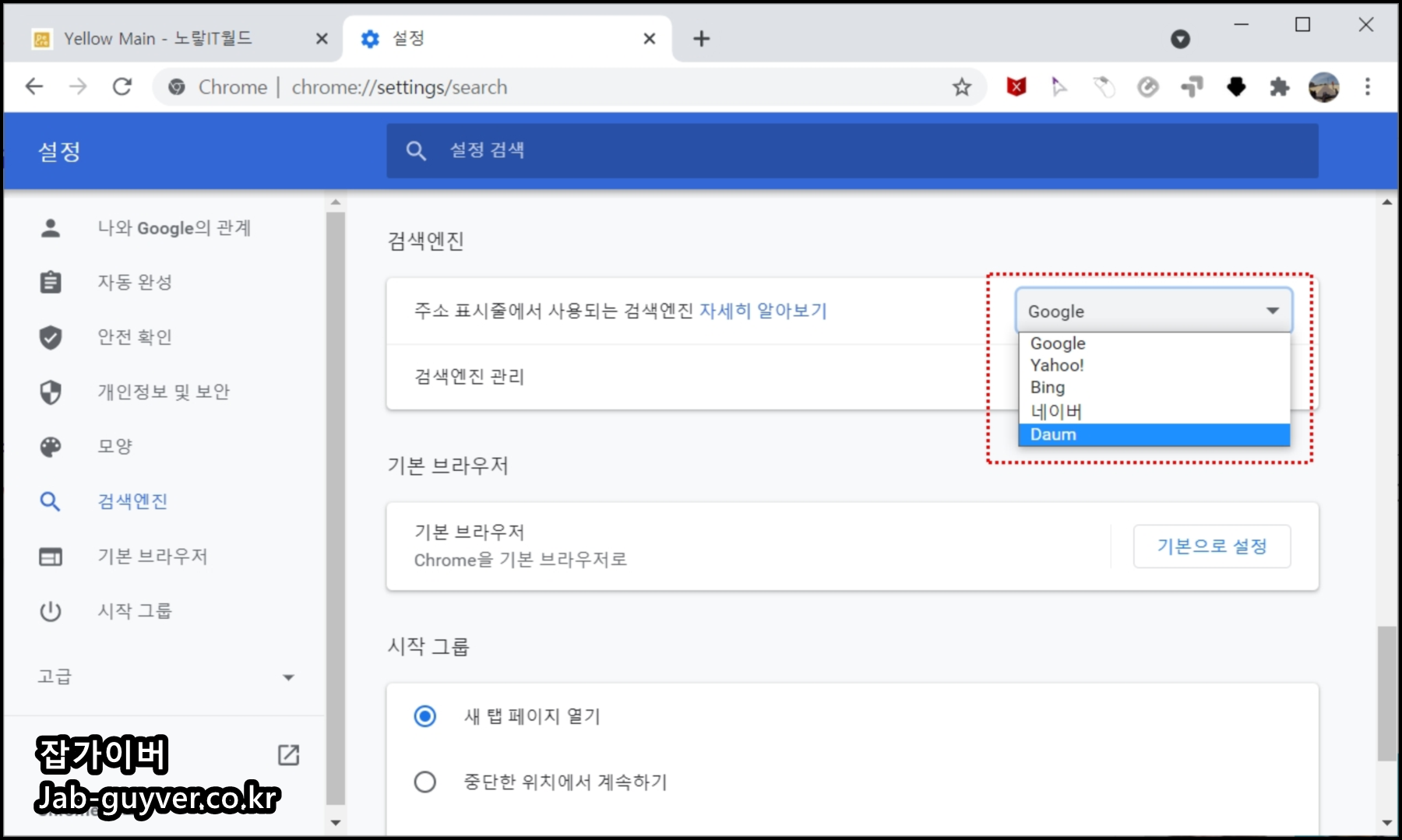 여기서 원하는 검색엔진을 선택해서 변경합니다.
