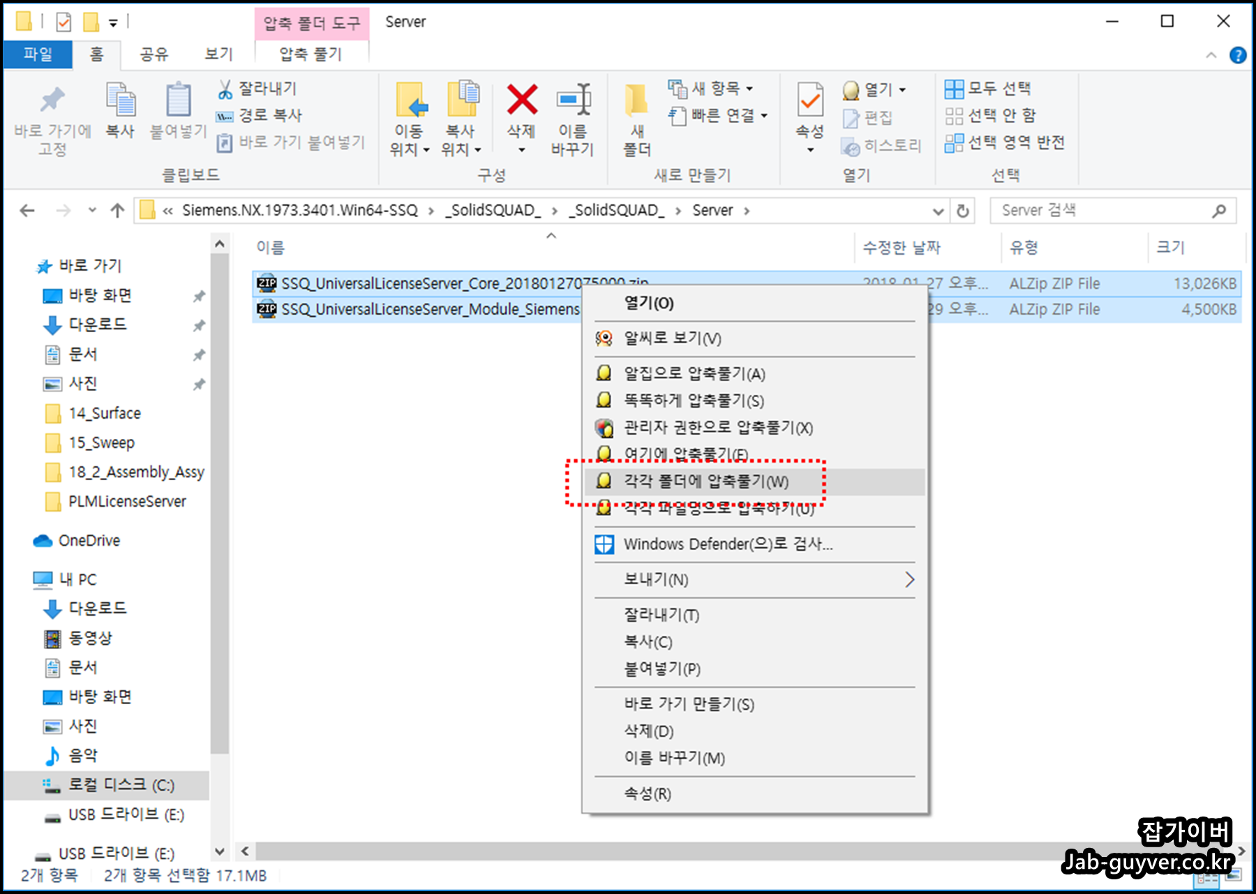 우선 두개의 폴더를 각각 압축을 해제합니다.