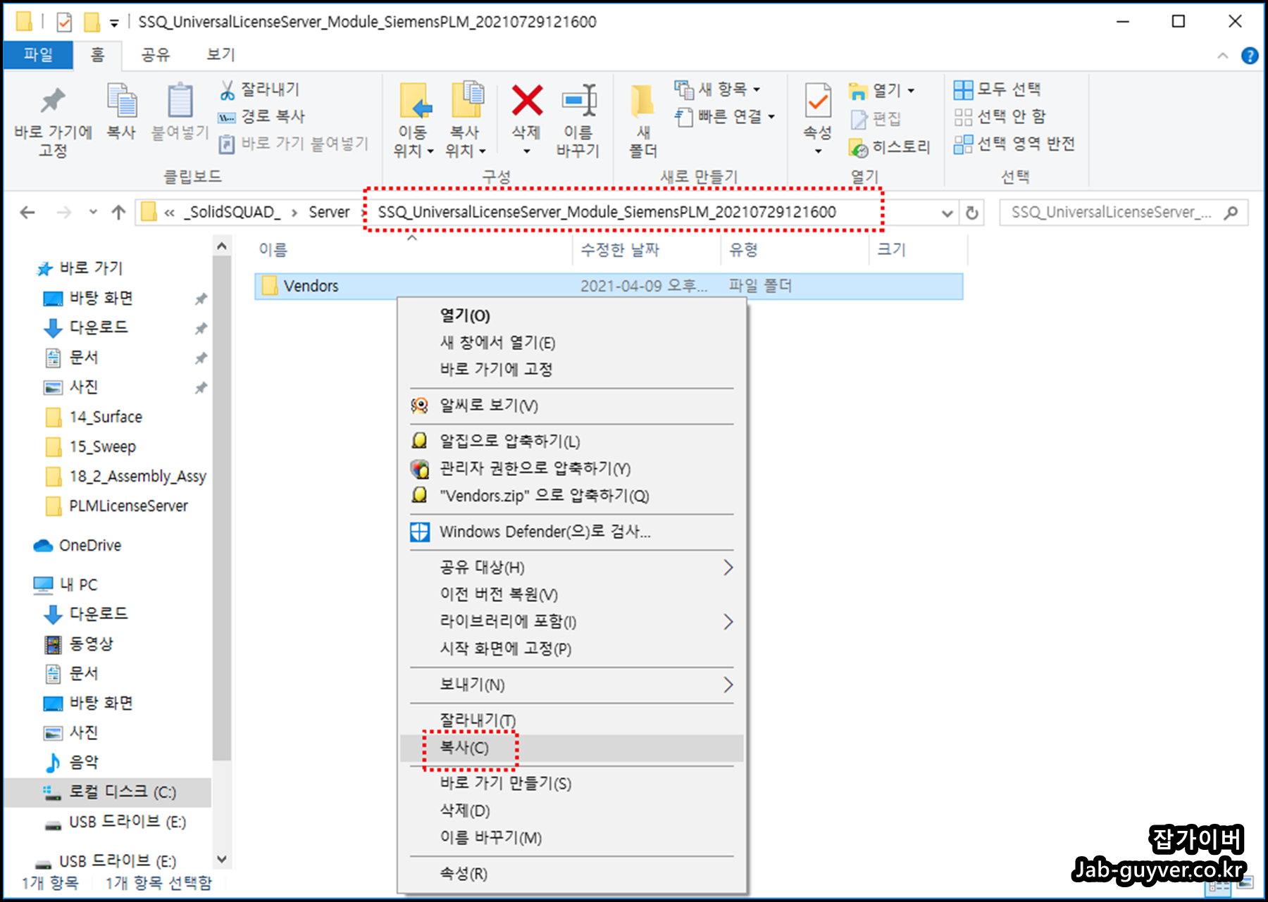 SSQ_UniversalLicenseServer_Module_SiemensPLM_20190411134700 폴더안에 있는 Vendors 폴더를 복사합니다.