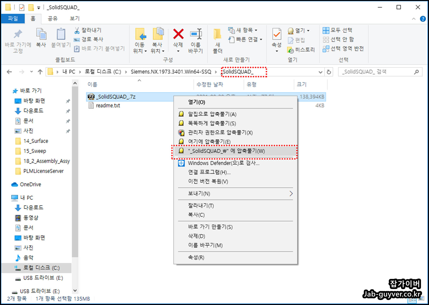 우선 크랙파일인 _SolidSQUAD_ 압축을해제합니다.