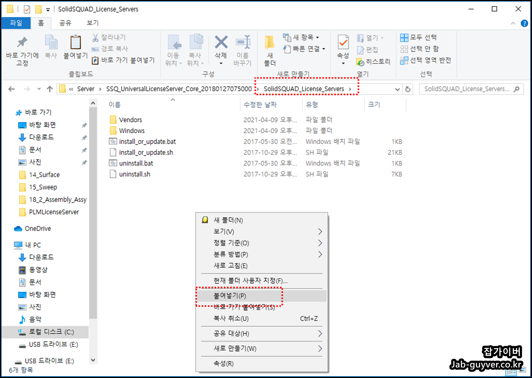 이렇게 복사한 SolidSQUAD+License_Severs를 C드라이브에 이동시킵니다.