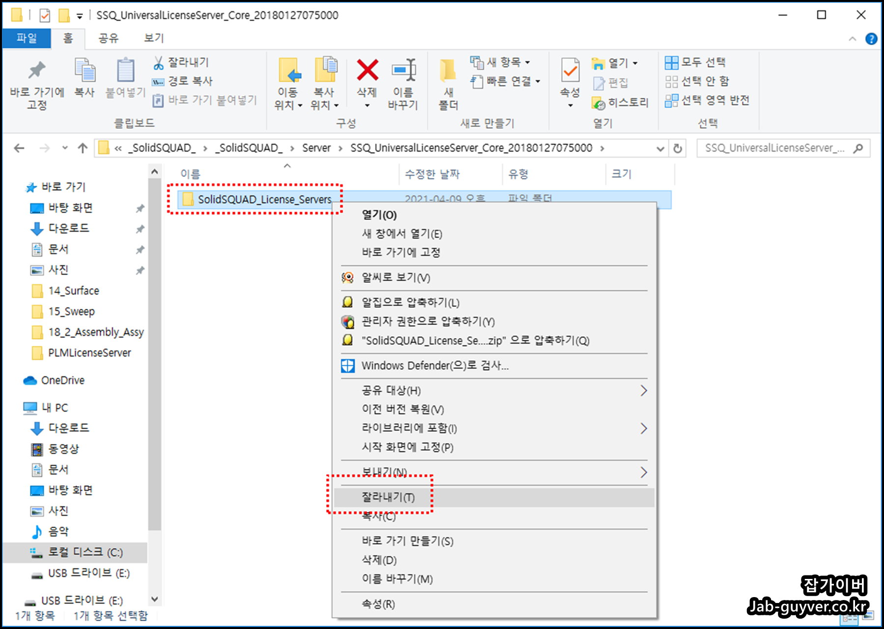이렇게 복사한 SolidSQUAD+License_Severs를 C드라이브에 이동시킵니다.