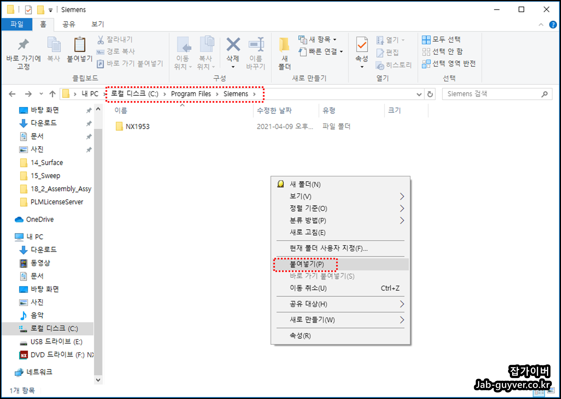 C:Program Files\Siemens 폴더에 붙여넣기합니다.