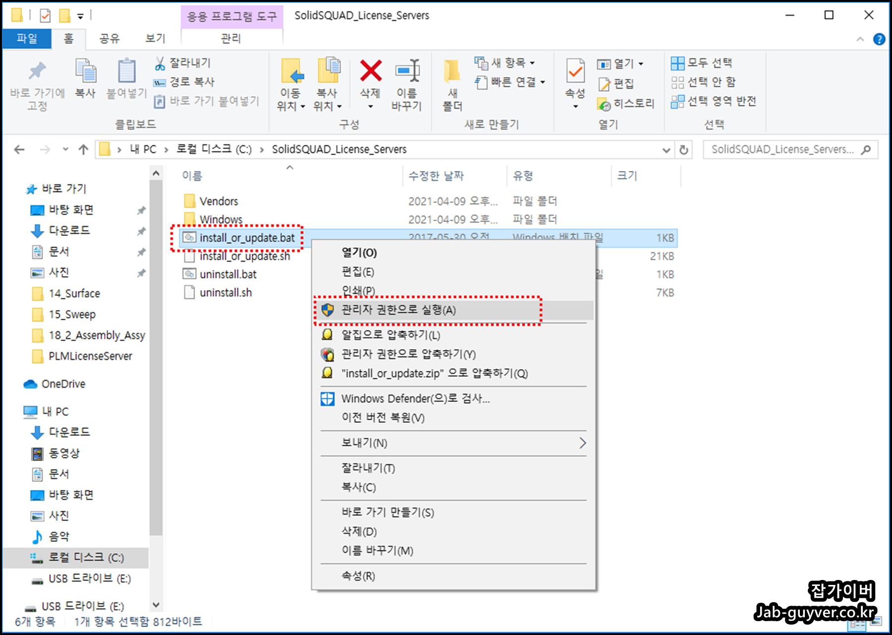 이렇게 설정한 라이센스 파일을 Install_or_Update_Bat 파일을 관리자권한으로 실행합니다.