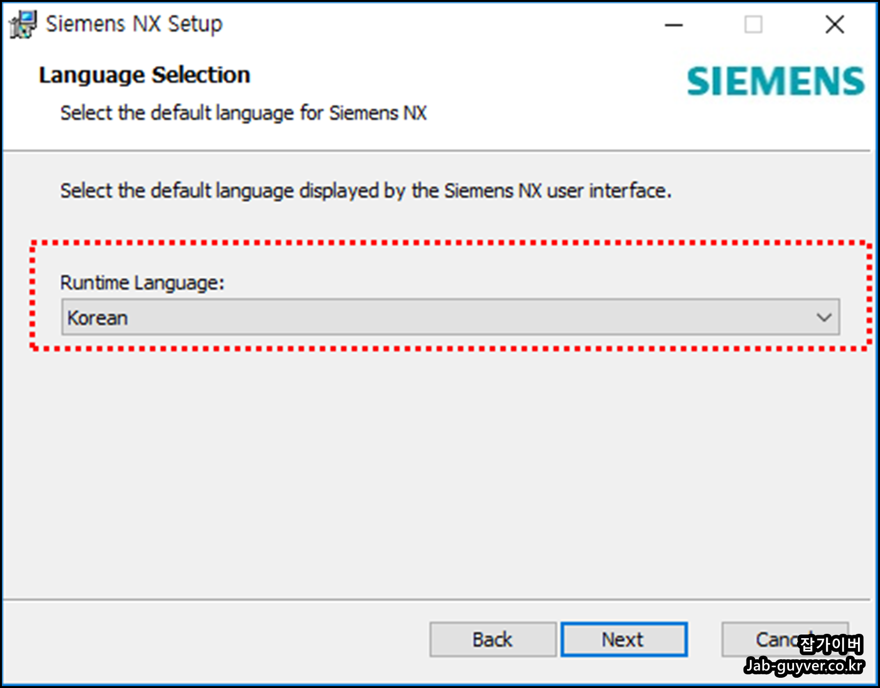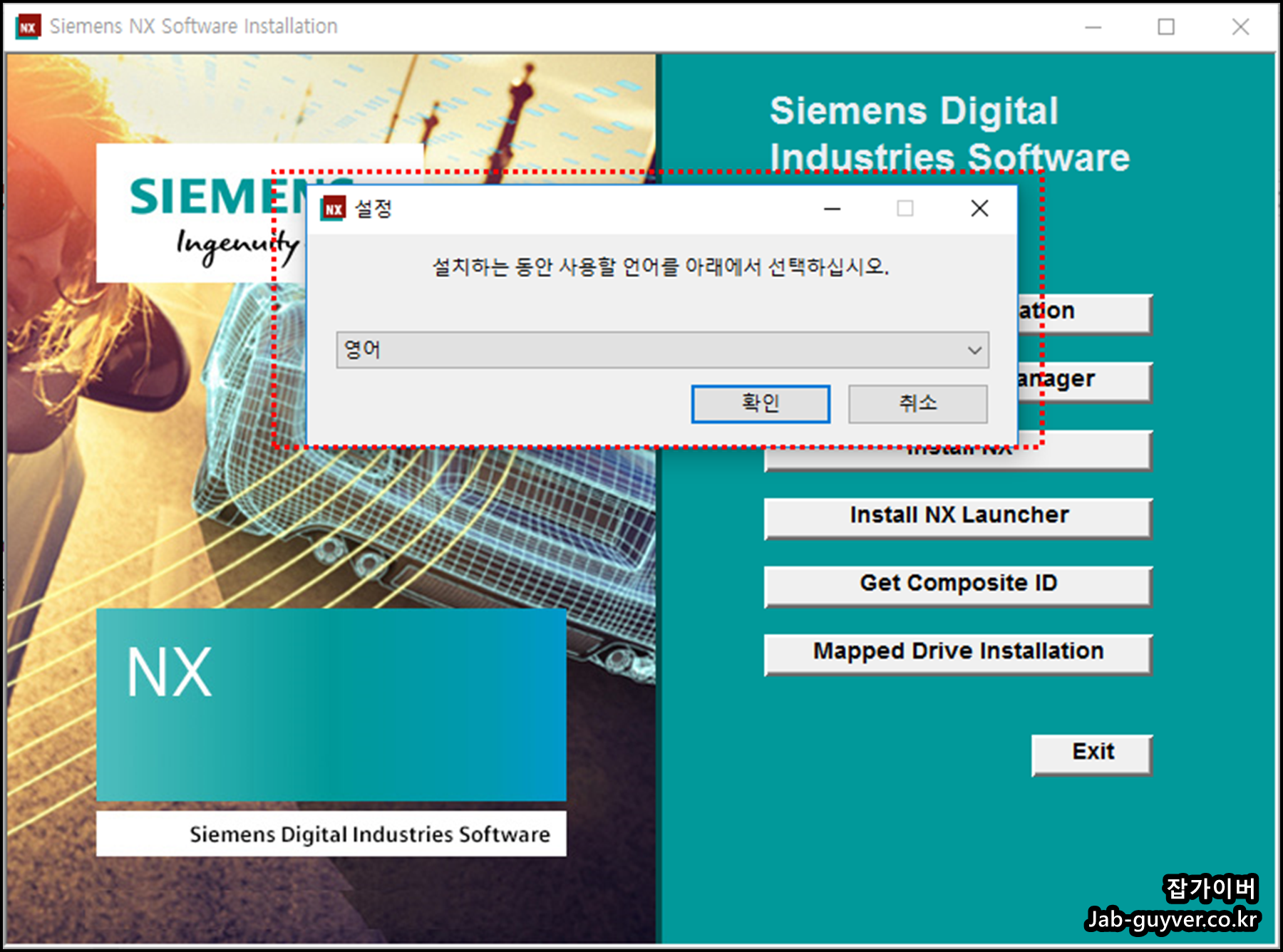 Install NX를 선택해서 설치언어를 선택합니다.