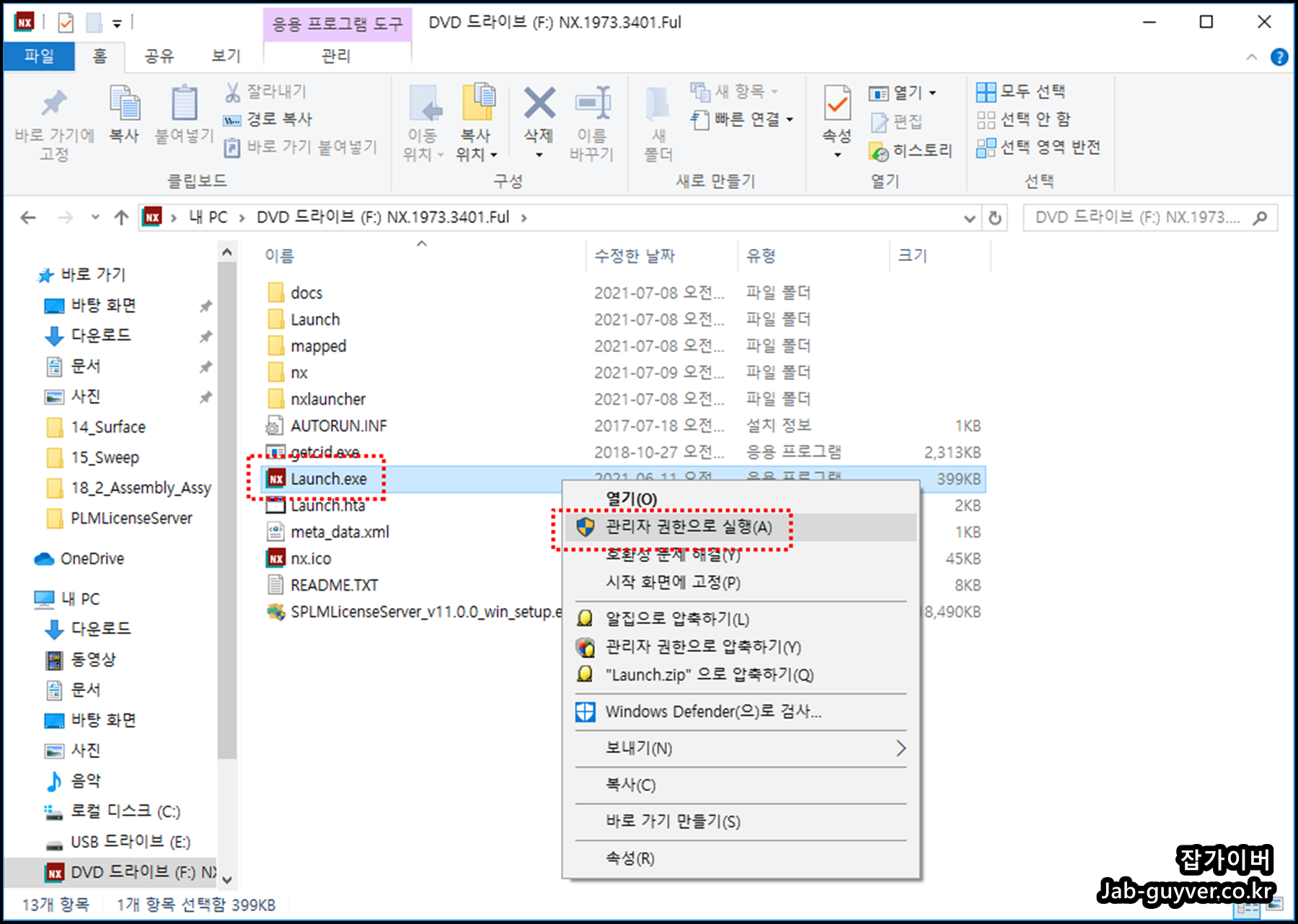 Launch.exe파일을 관리자권한으로 선택해서 설치를 진행합니다.