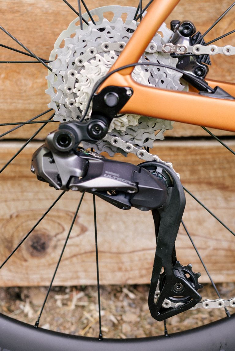 리어 탈선 장치 뒷면에 내장된 기능 버튼과 LED 표시기는 정션 박스의 기능을 재현합니다. 안타깝게도 이 시스템은 완전히 새로운 배터리 시스템이기 때문에 이전 버전의 시마노 Di2와 역 호환되며 실제로 기어를 가로질러 체인을 이동한다는 측면에서, 리어 탈선기는 현재 최대 34T의 대형 톱니바퀴를 수용할 수 있는 단일 풀리 케이지 길이와 함께 여전히 Shimano의 Shadow 형상을 사용합니다.