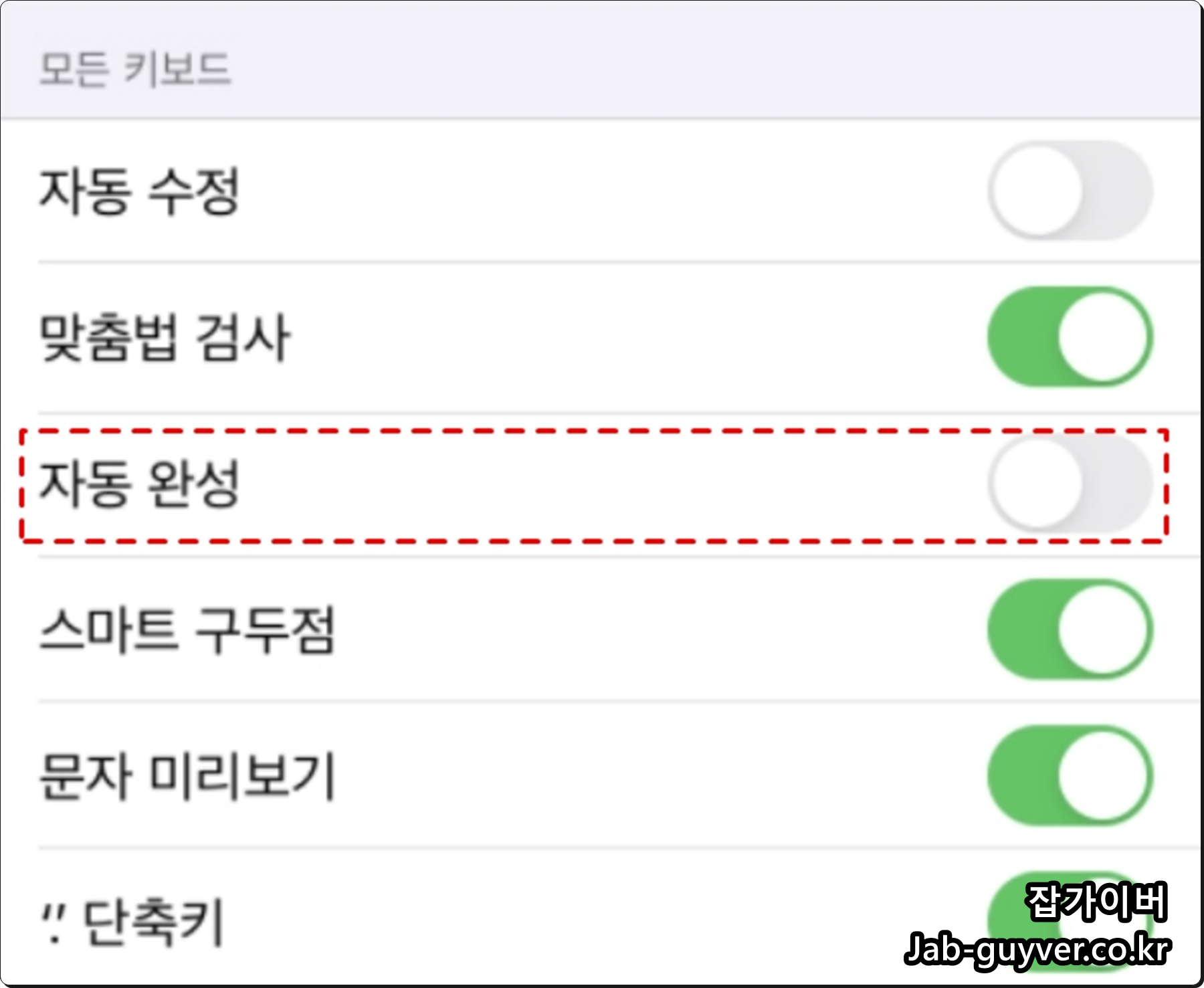 아이폰 단어 자동완성 끄기 및 켜기 - 키보드 설정