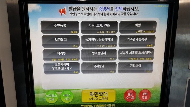 - 무인민원발급기 : 일부 기기 상 발급 가능