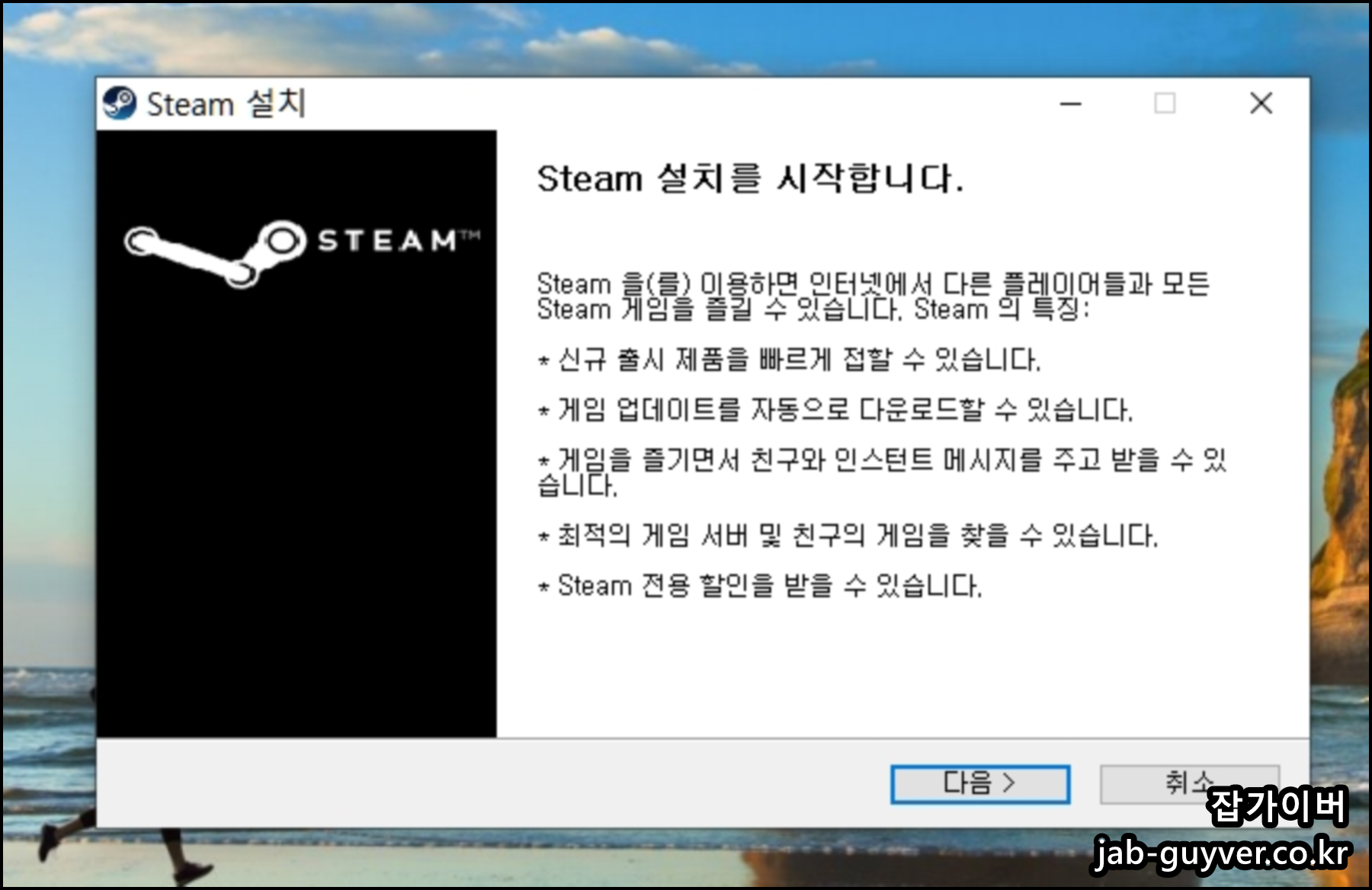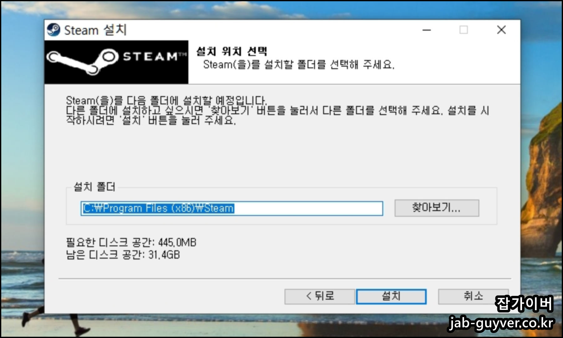 스팀을 설치하기 위해서는 총 45mb정도의 용량이 필요로합니다.