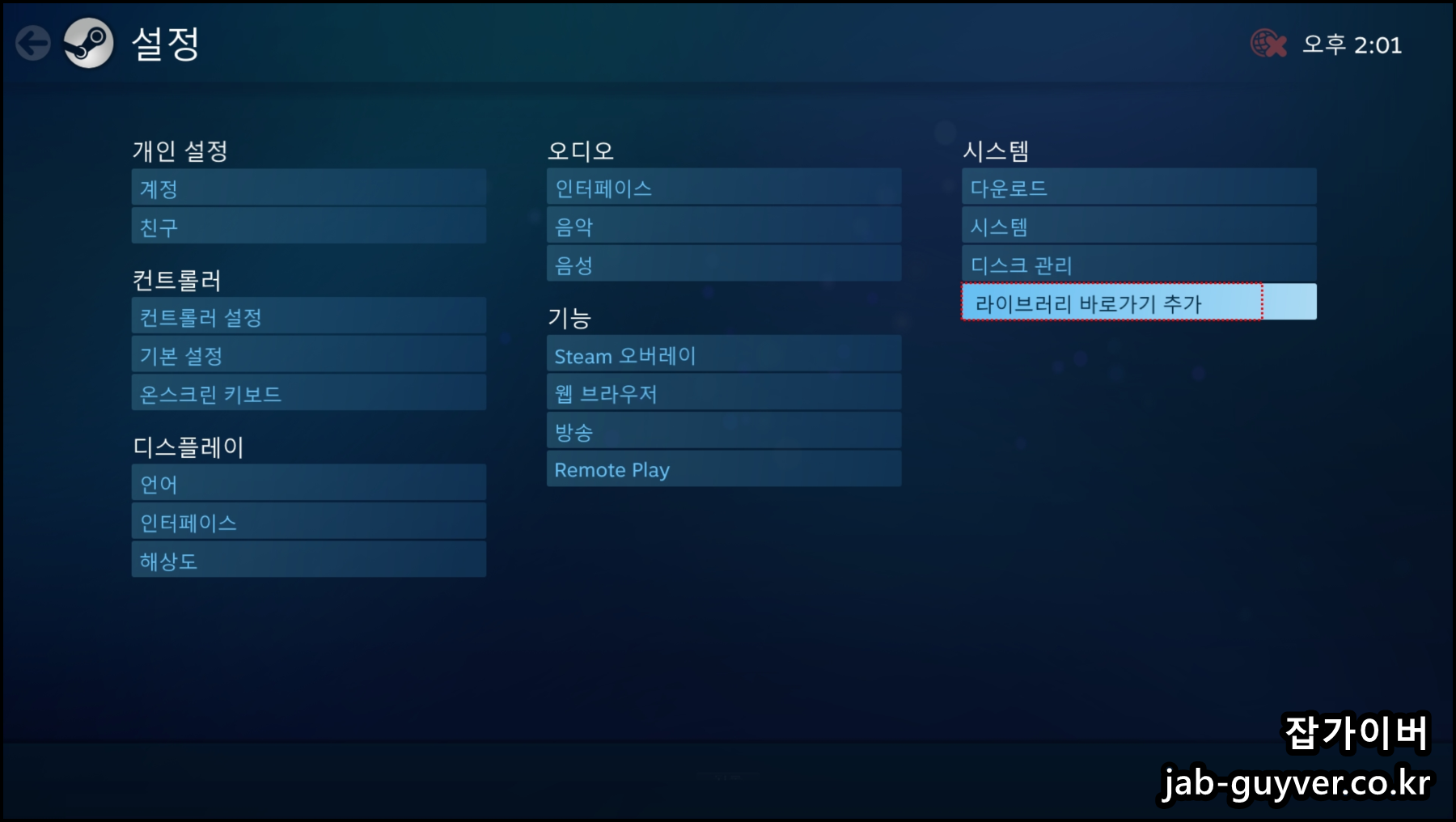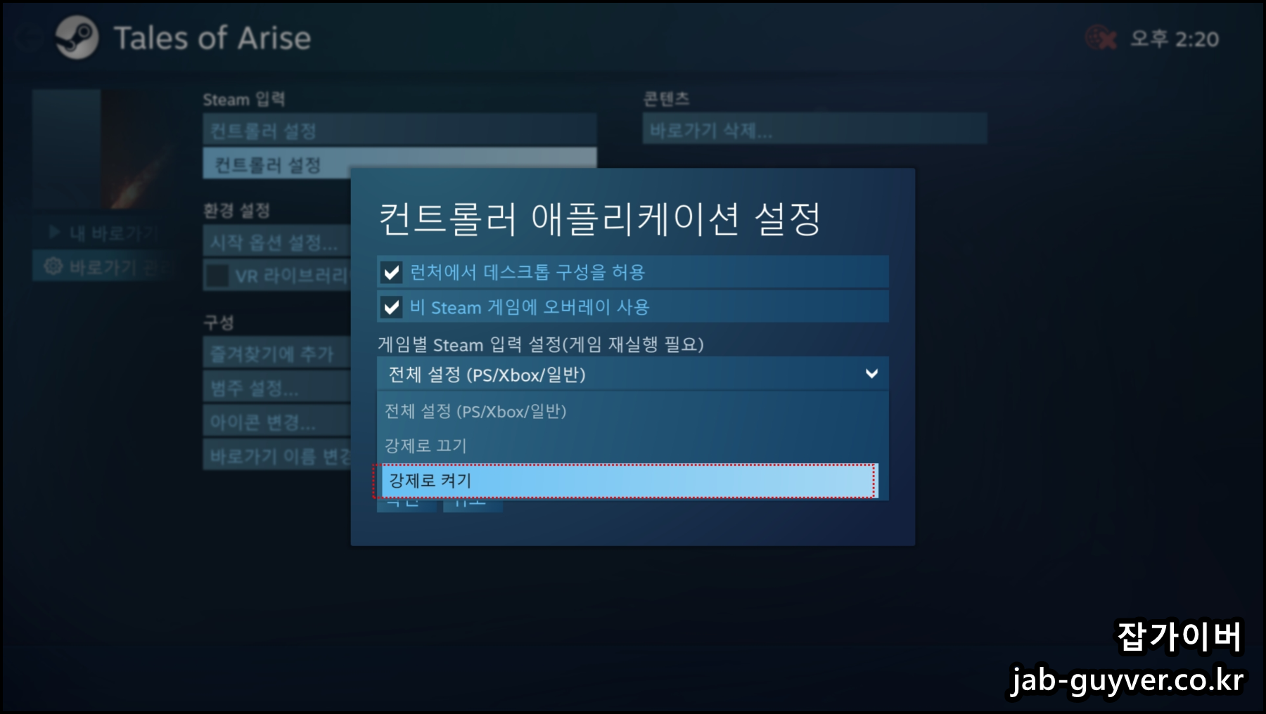 컨트롤러 애플리케이션을 런처에서 데스트톱으로 구성을 허용하고 비 스팀게임을 오버레이 할 수 있습니다.