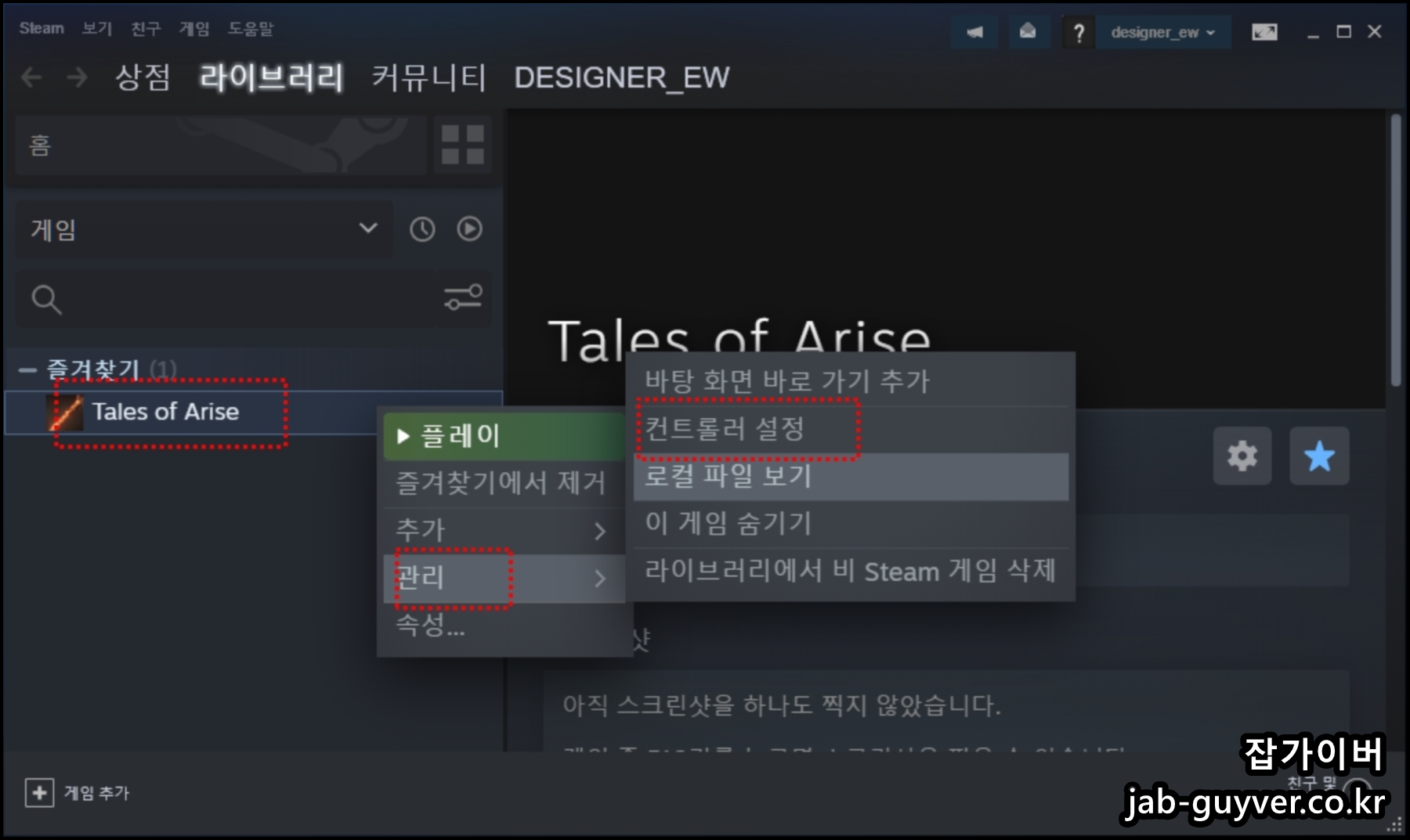 저같은 경우 테일즈오브 아레스라는 게임을 스팀에 추가합니다.
