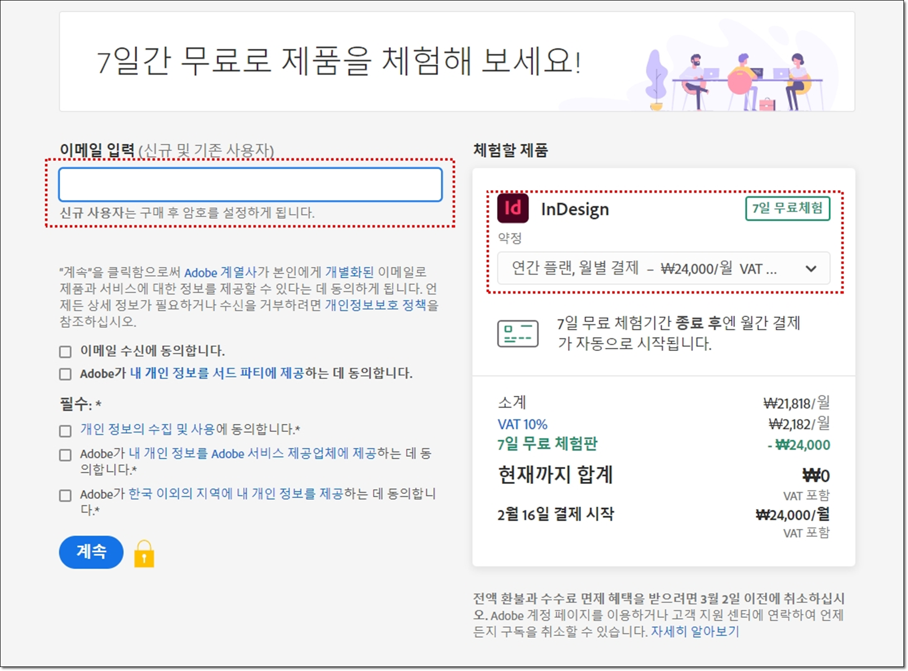 - 이때 7일 무료 사용후에는 월 24,000원 결제됩니다.
