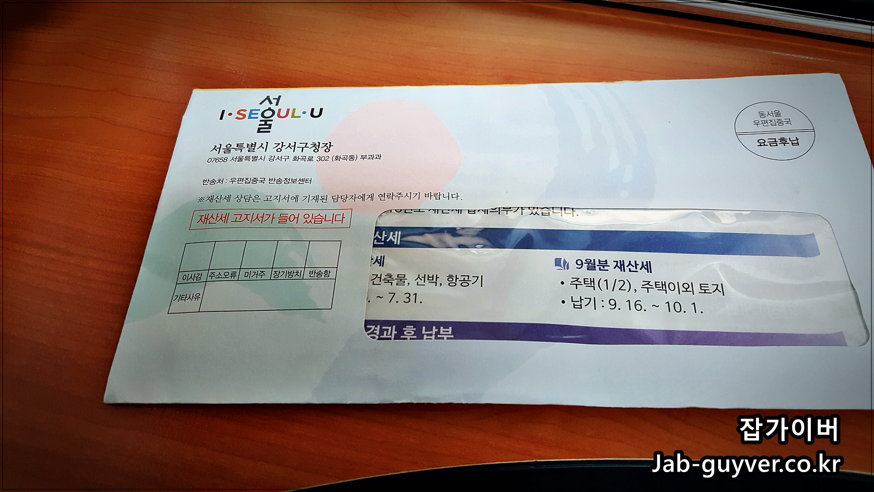 고지서는 주민등록상 주소지로 송달되며, 만약 고지서를 못받았거나 훼손 또는 분실한 경우에는 부동산 소재지 관할관청과 상관없이 서울시내 아무 동주민센터 또는 구청에서 재발급을 받을 수 있습니다.
