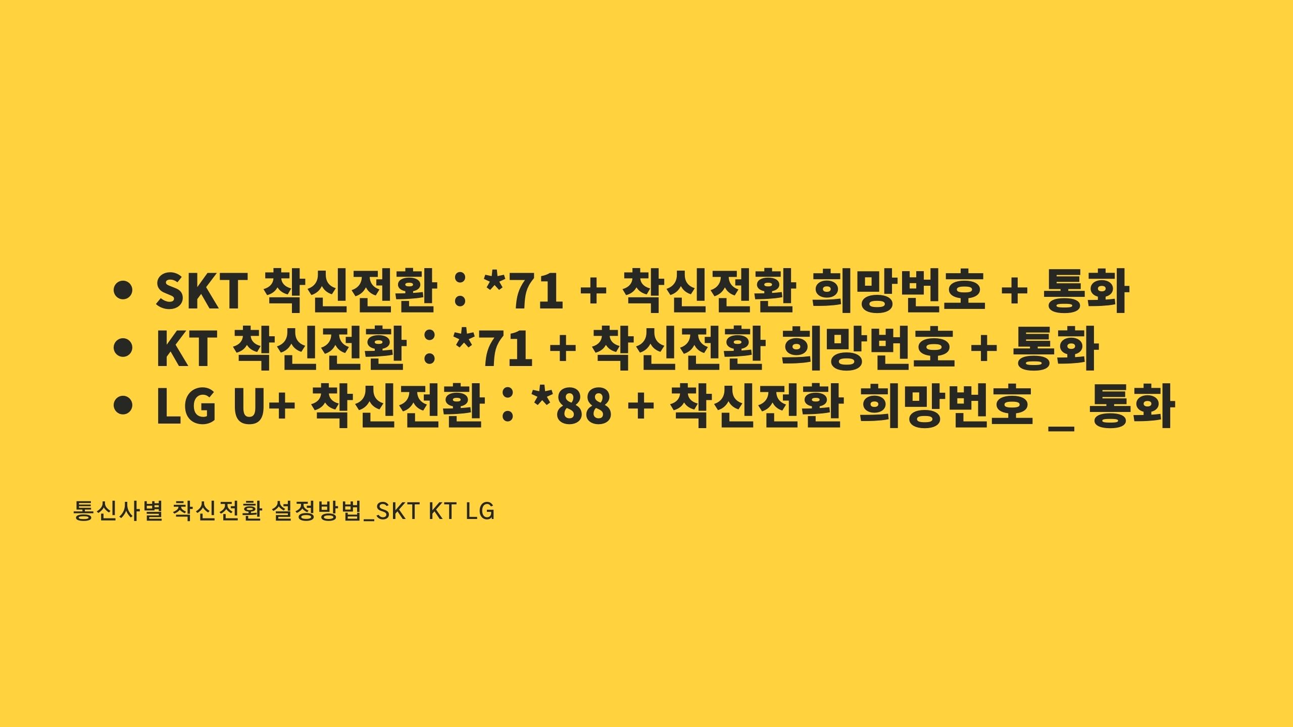 - SKT 착신전환 : *71 + 착신전환 희망번호 + 통화
