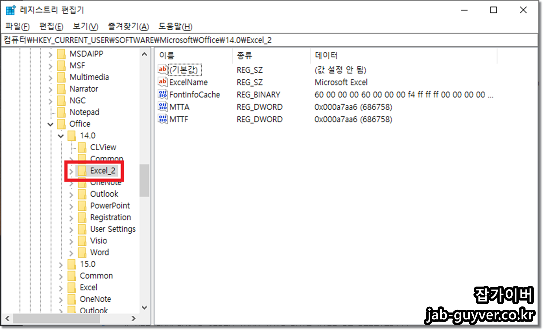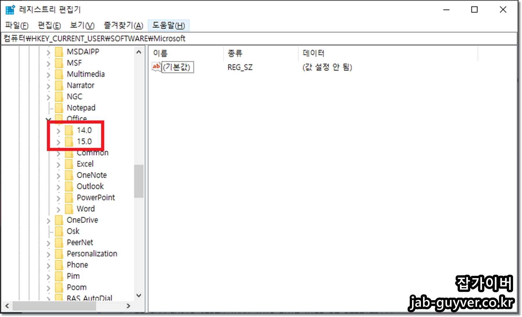 오피스 초기화 레지스트리 편집