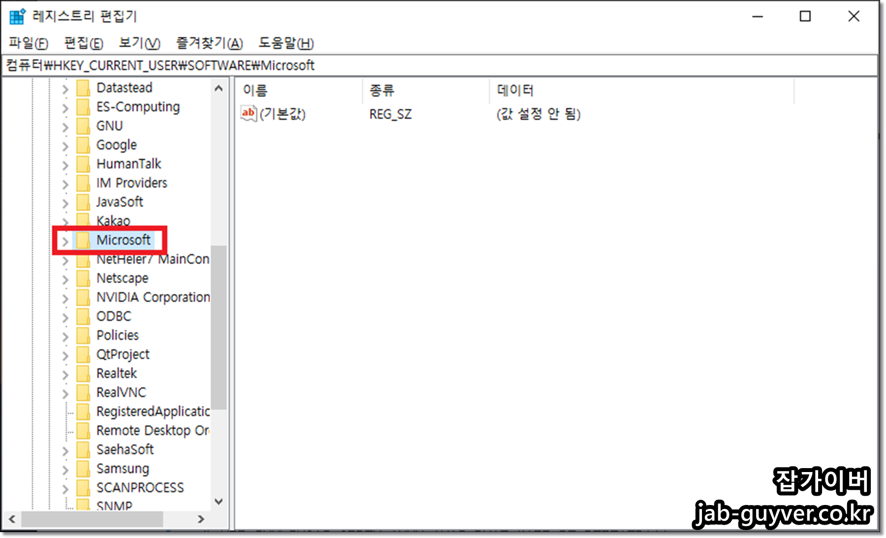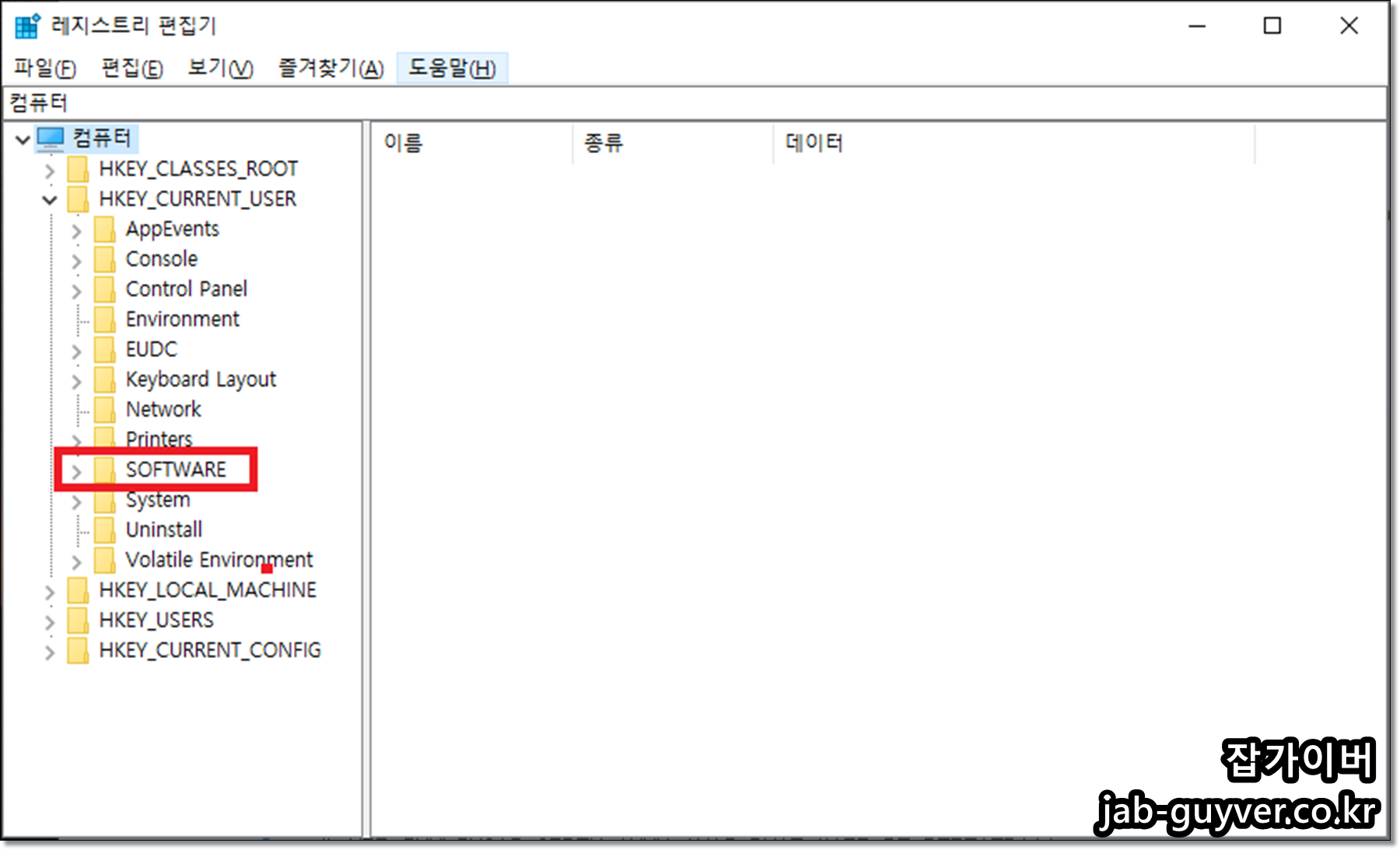 레지스트리 편집기가 실행됩니다.