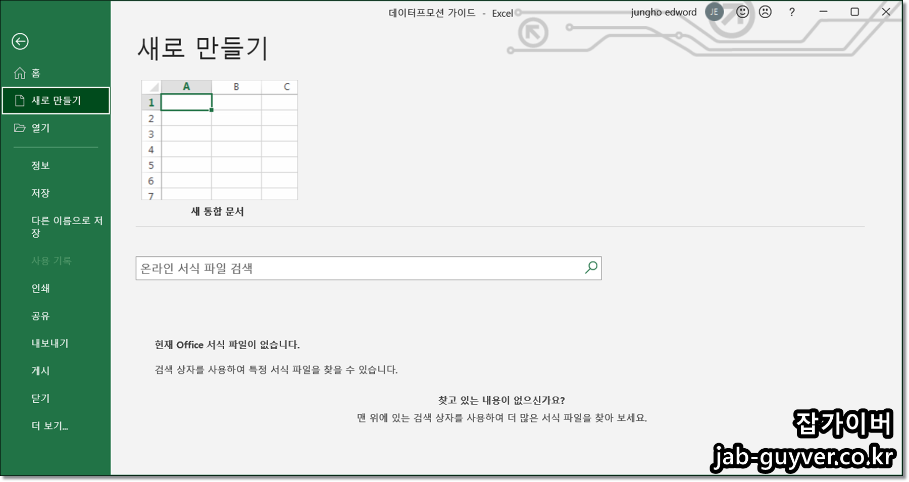 MS오피스 초기화 후 오피스의 엑셀, 워드, 파워포인트를 실행하면 처음 설치되었던 상태로 오피스 초기화가 완료된것을 볼 수 있습니다.