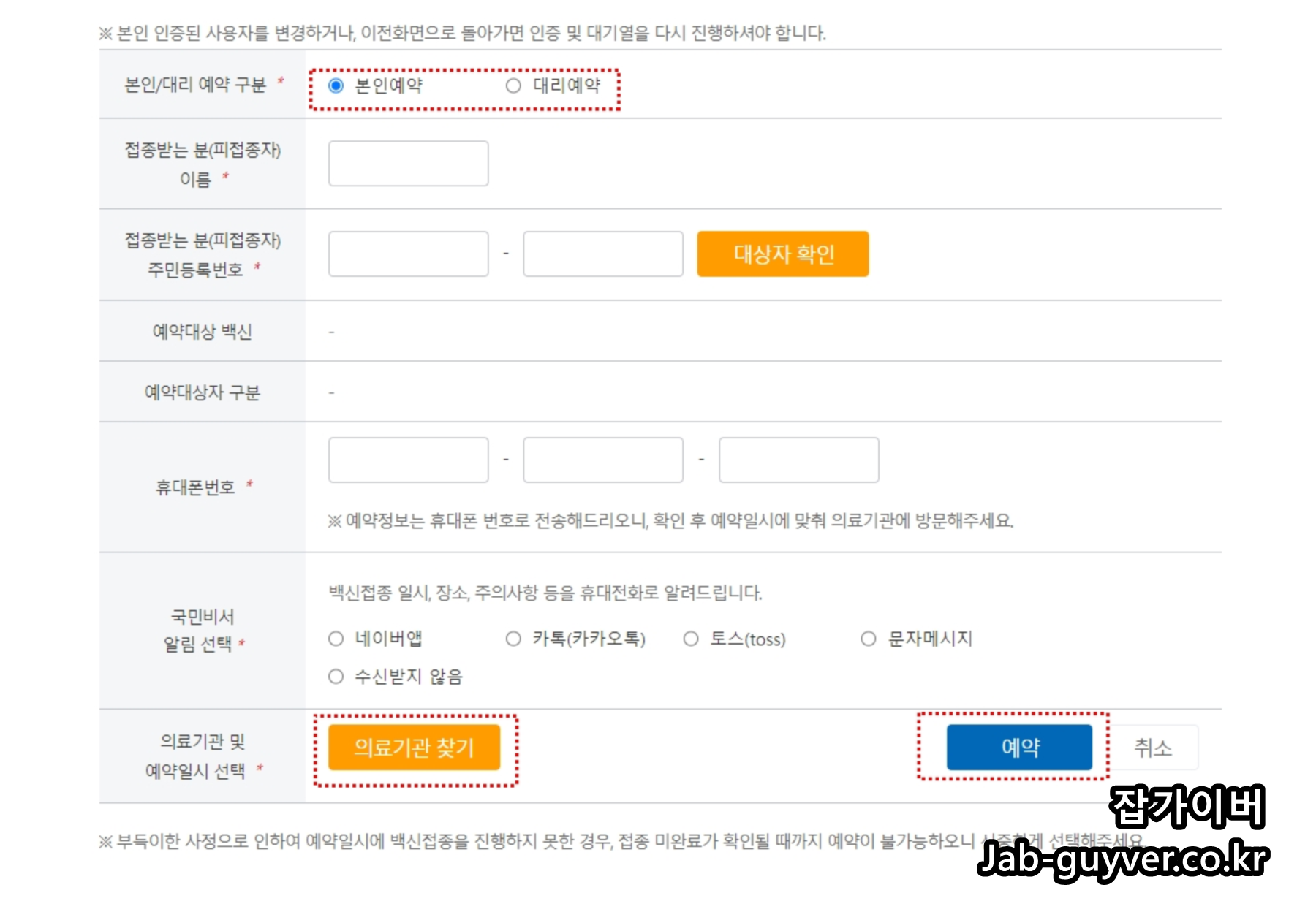우선 본인예약인지 타인이 대리에약인지 체크합니다.