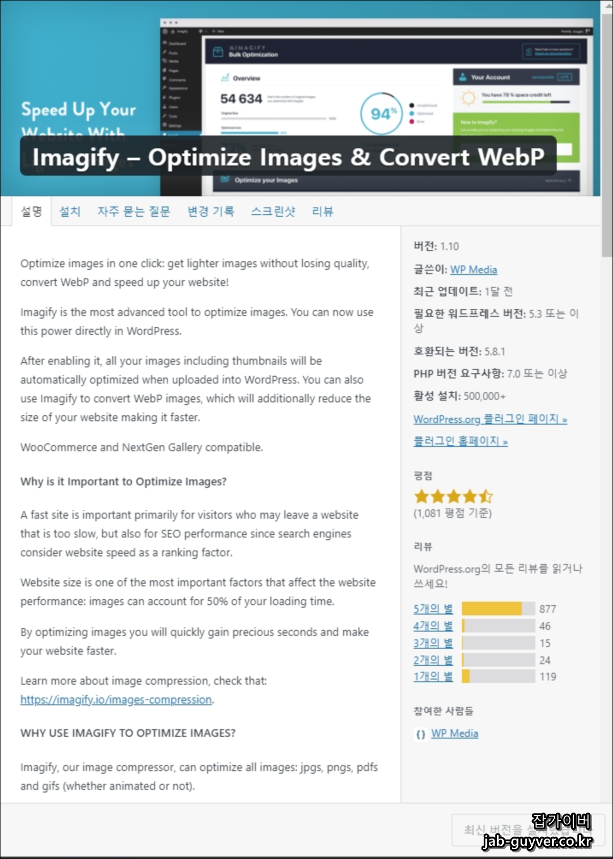 워드프레스 WEBP 이미지 변환 및 압축 플러그인 - Imagify