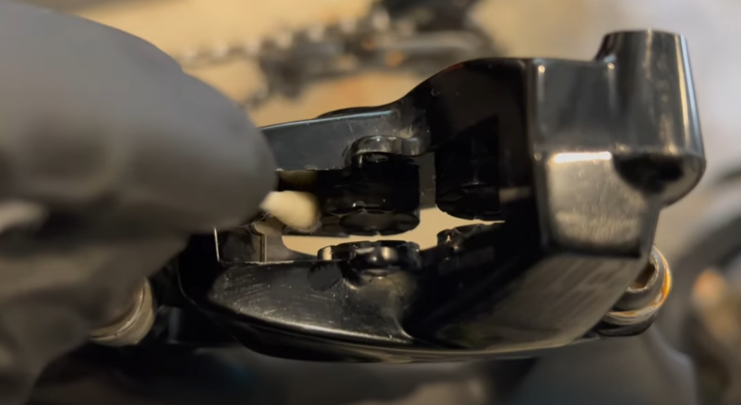 디스크브레이크 교체 시 브레이크 패드가 센터에 위치해 있지 않거나 아니면 디스크 브레이크 피스톤이 제대로 들어가거나 나오지 않느다면 피스톤 사이에 이물질이 꼇을경우로 이 경우 면봉을 이용해 알콜등을 묻혀 피스톤을 조금 나오게 한 다음 피스톤 사이드의 먼지를 제거합니다.