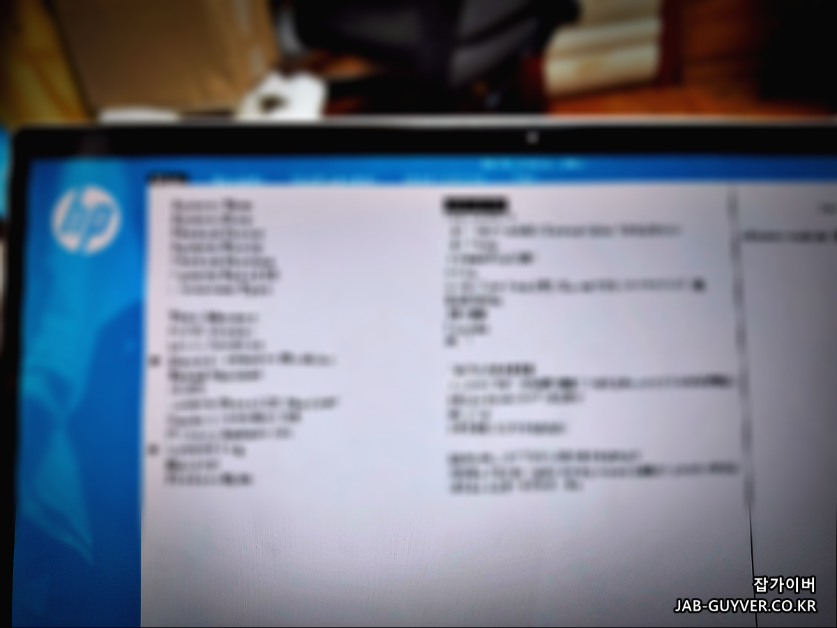 HP CMOS로 들어가면 현재 노트북 메인보드의 시간과 모델명 모드이름등을 확인할 수 있습니다.