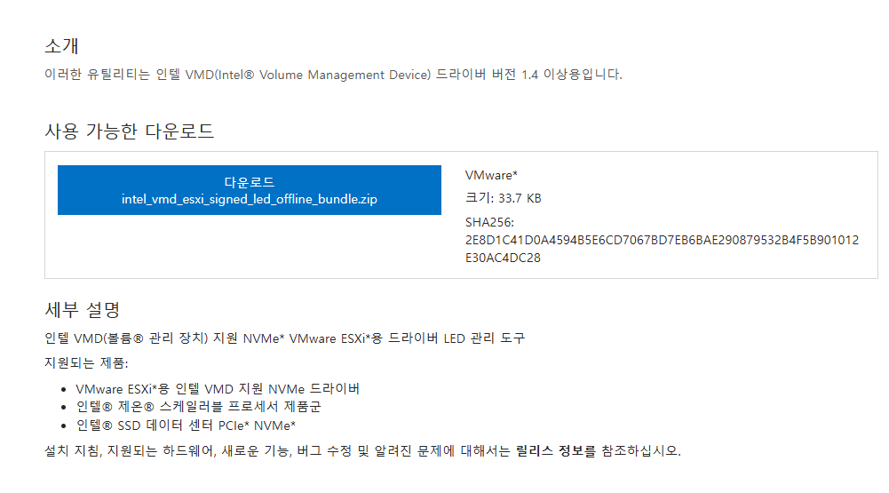 - Intel VMD (Volume Management Device) 드라이버