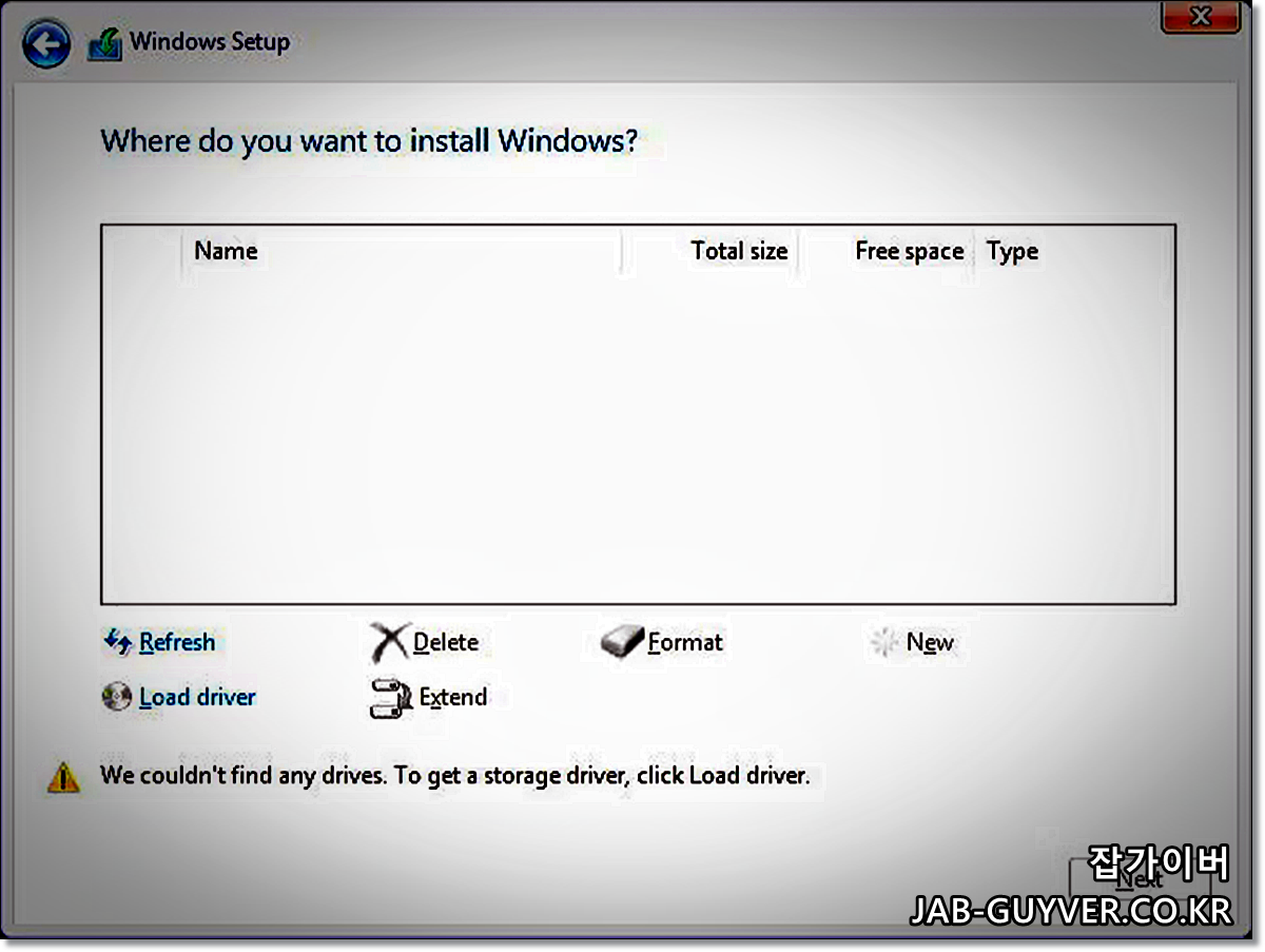 윈도우 설치 시 설치 드라이브가 보이지 않습니다.