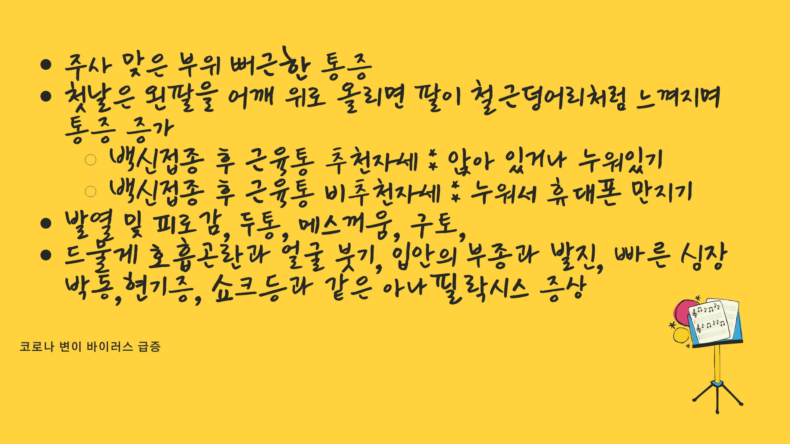 • 백신접종 후 근육통 추천자세 : 앉아 있거나 누워있기