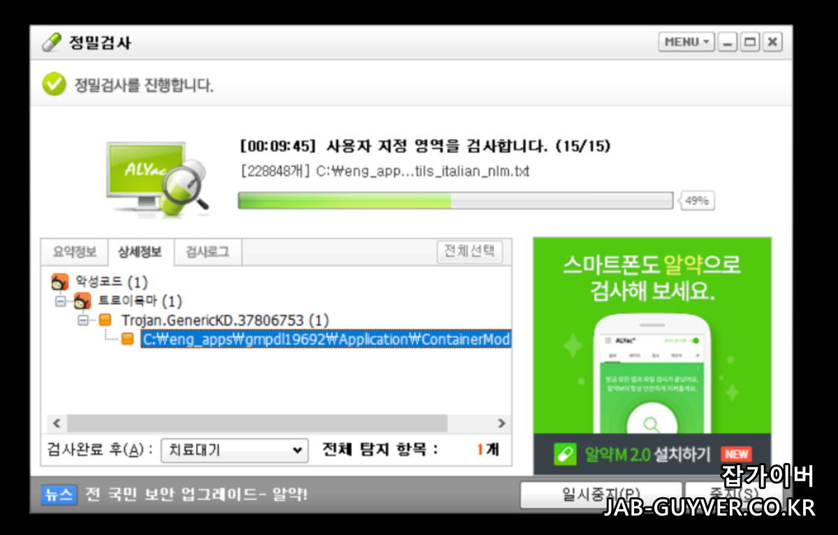 그리고 여기서 트로이목마를 치료하면 완벽하게 제거됩니다.