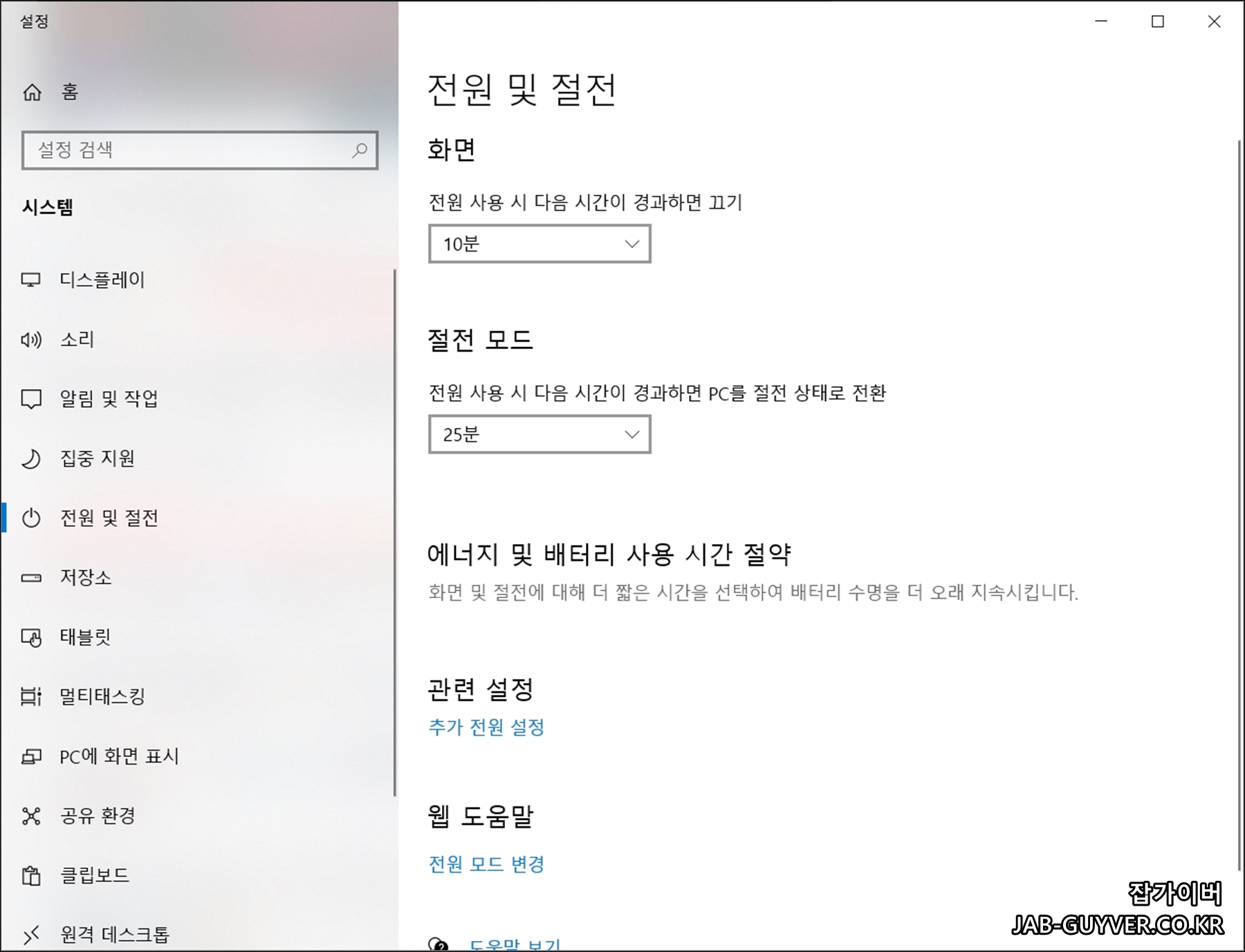 노트북의 경우 배터리 사용시간을 늘리기 위해 배터리 사용시 전력량을 조절합니다.