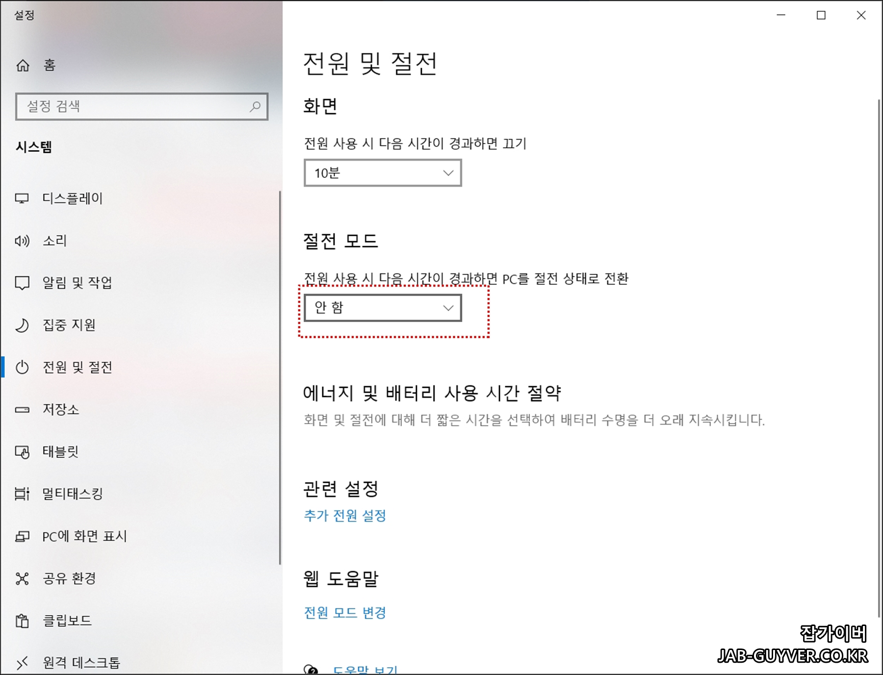 데스크탑이나 노트북등 전력에 상관없이 느려지지 않고 100% 성능을 발휘하고 싶다면 절전모드 해제하느것이 좋습니다.