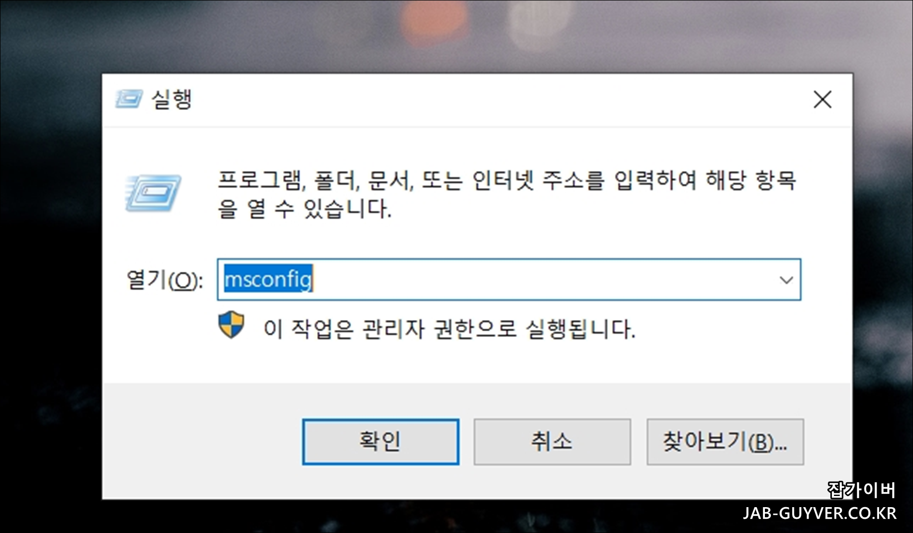 - 시스템 구성 단축키 : msconfig