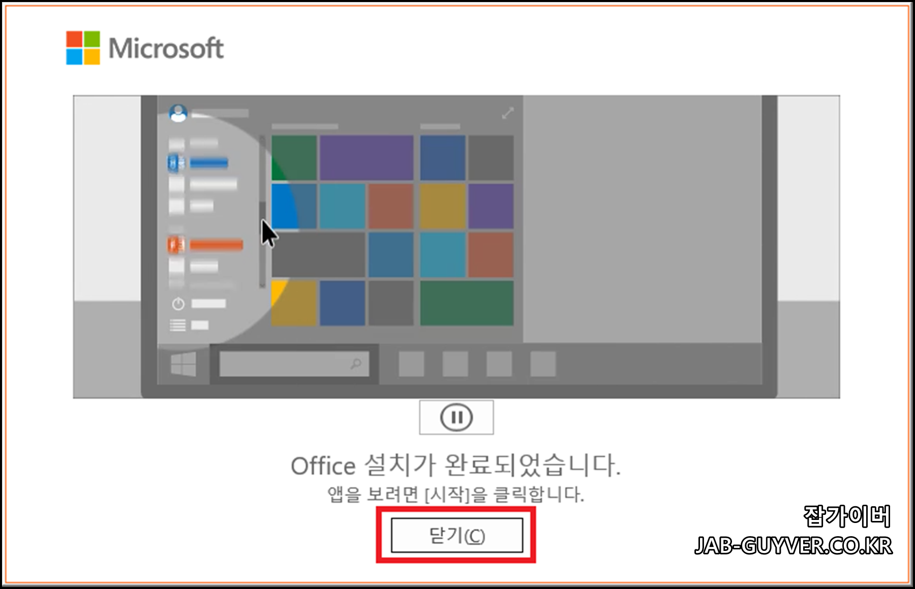 이후 오피스 설치가 완료되면 닫기를 눌러줍니다.