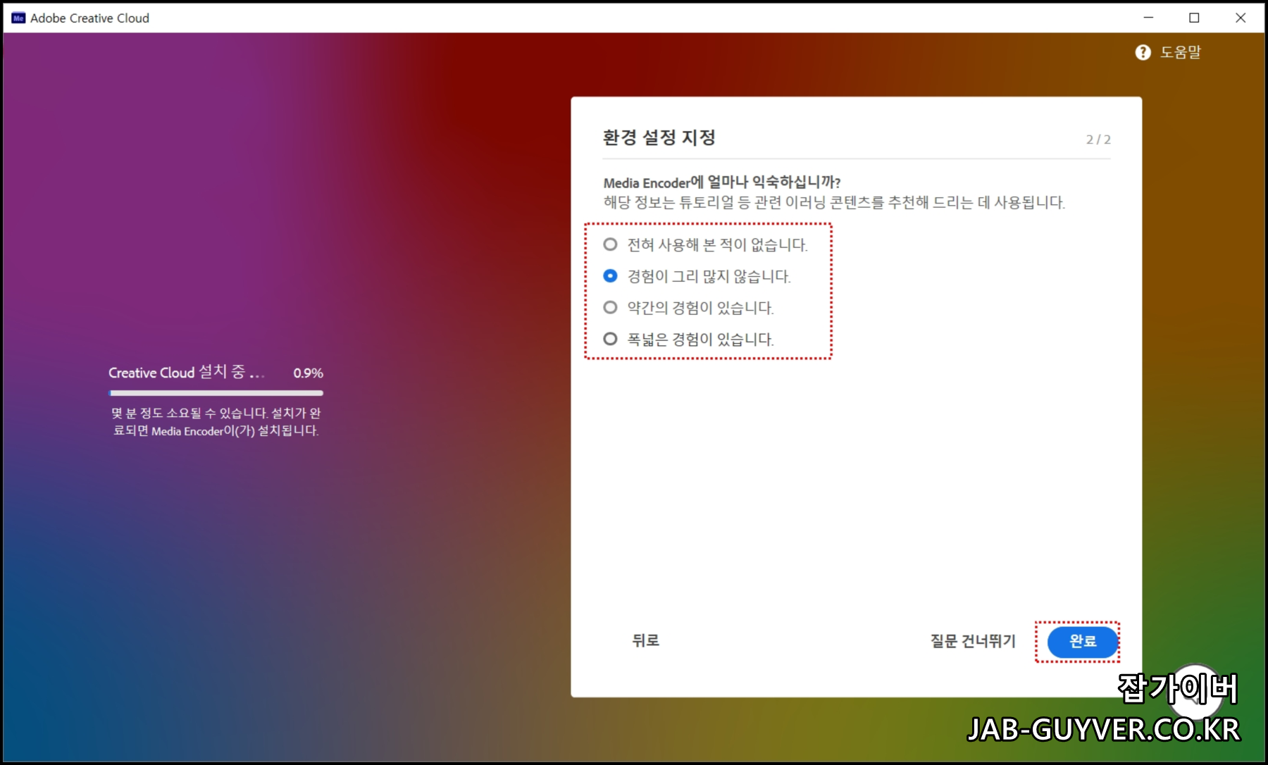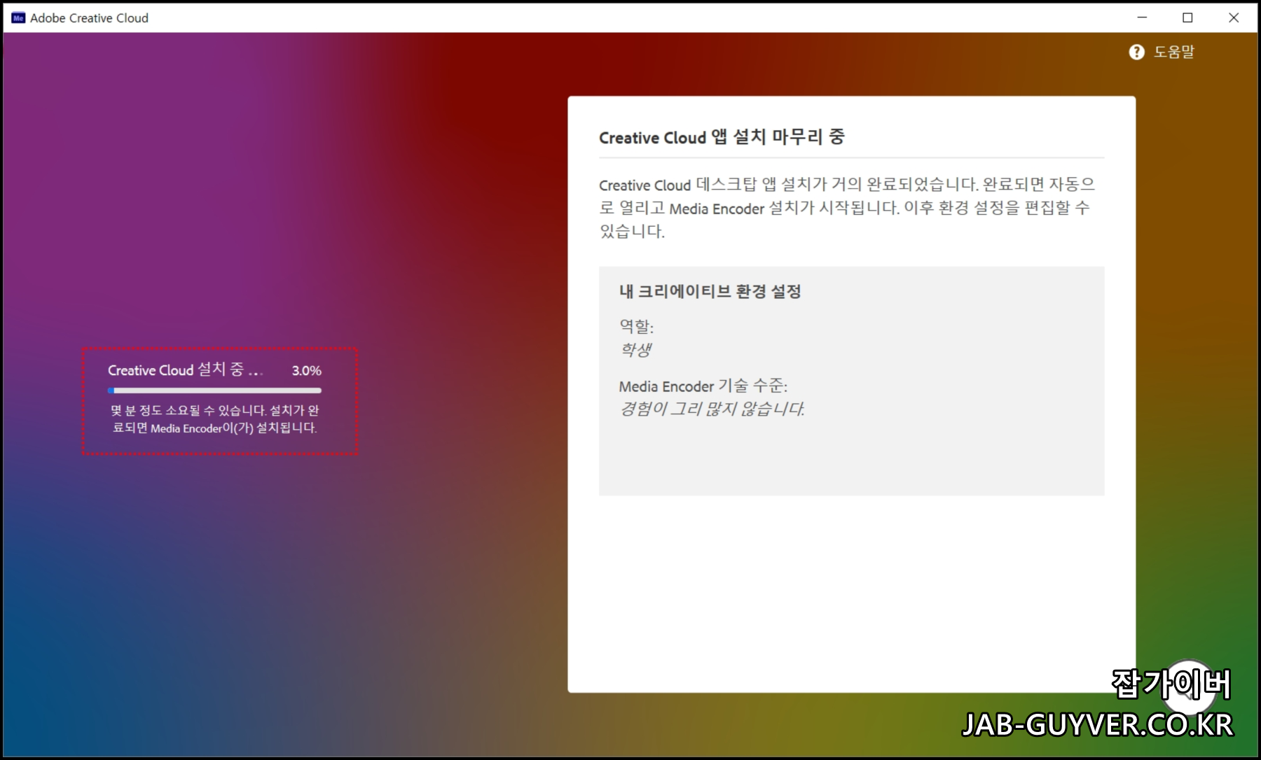 그럼 Adobe Creative Cloud가 설치되면서미디어인코더 설치가 완료됩니다.