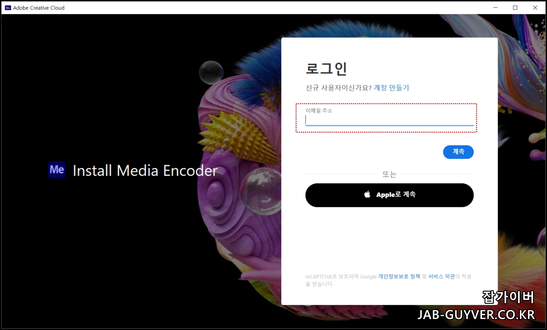 설치를 위해서는 Adobe 계정으로 로그인해야합니다.