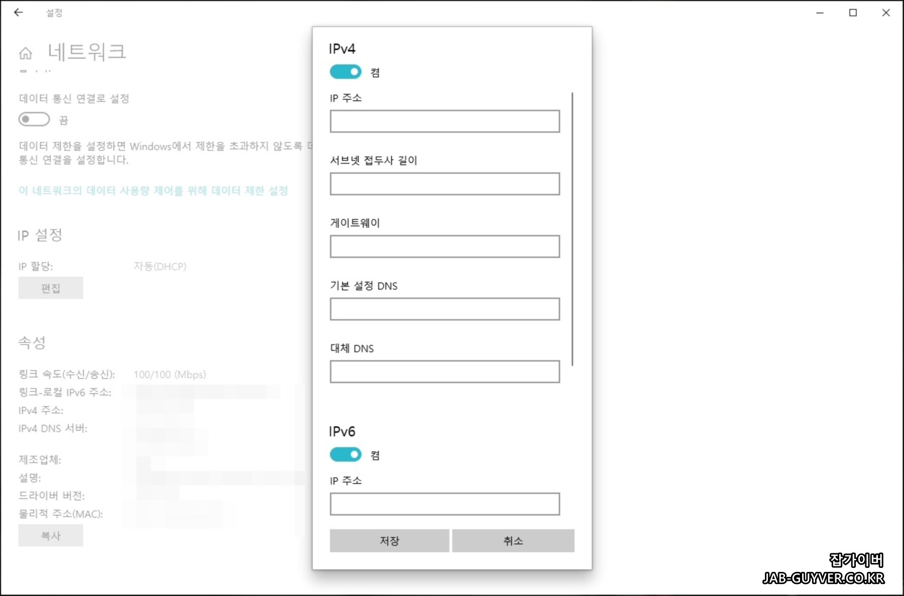 윈도우10에서 IPv4·IPv6 수동 IP 및 DNS 변경 방법
