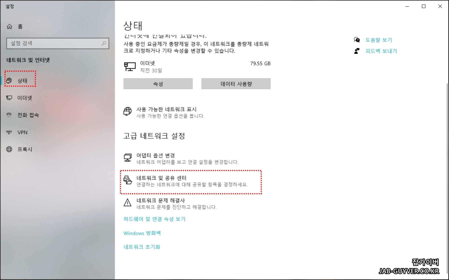 - 인터넷 연결설정 변경