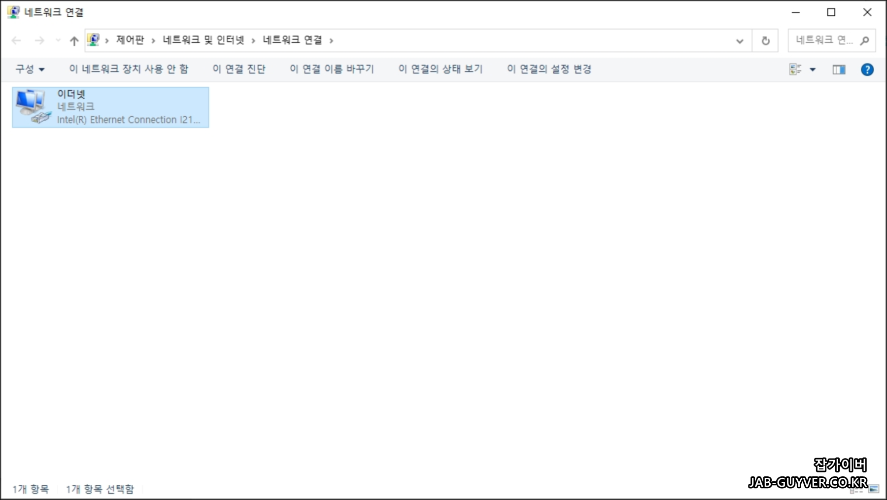 현재 이더넷 연결이 사용안함으로 네트워크 연결이 끊긴것을 볼 수 있습니다.