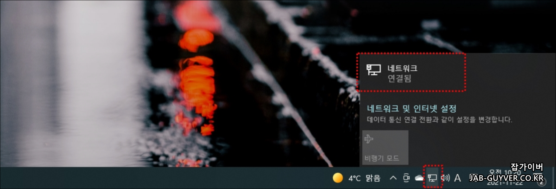윈도우 우측하단에 있는 네트워크 아이콘을 선택합니다.