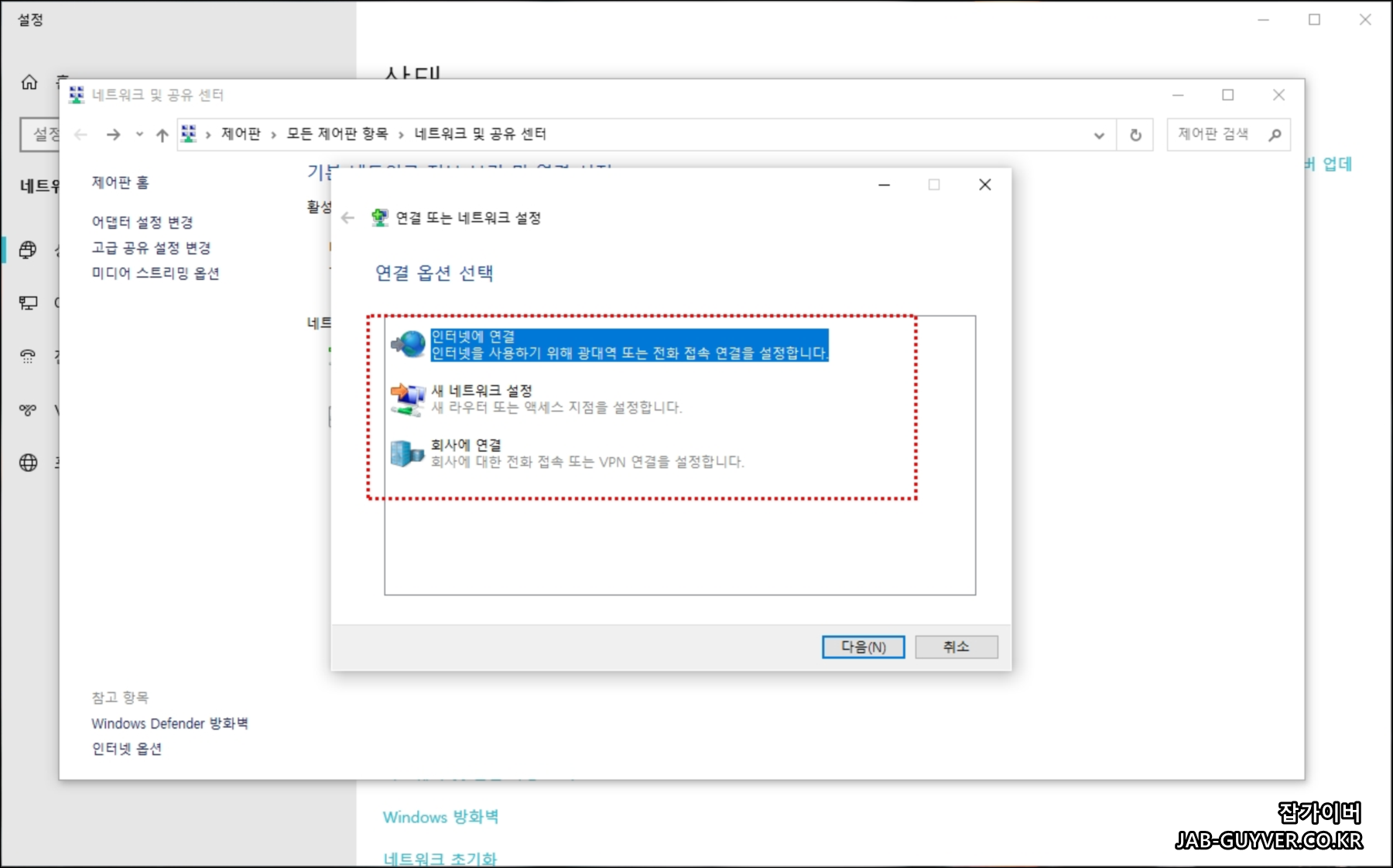 만약 인터넷 연결이 되지 않거나 새로운 연결설정을 원한다면 새 연결설정을 선택합니다.