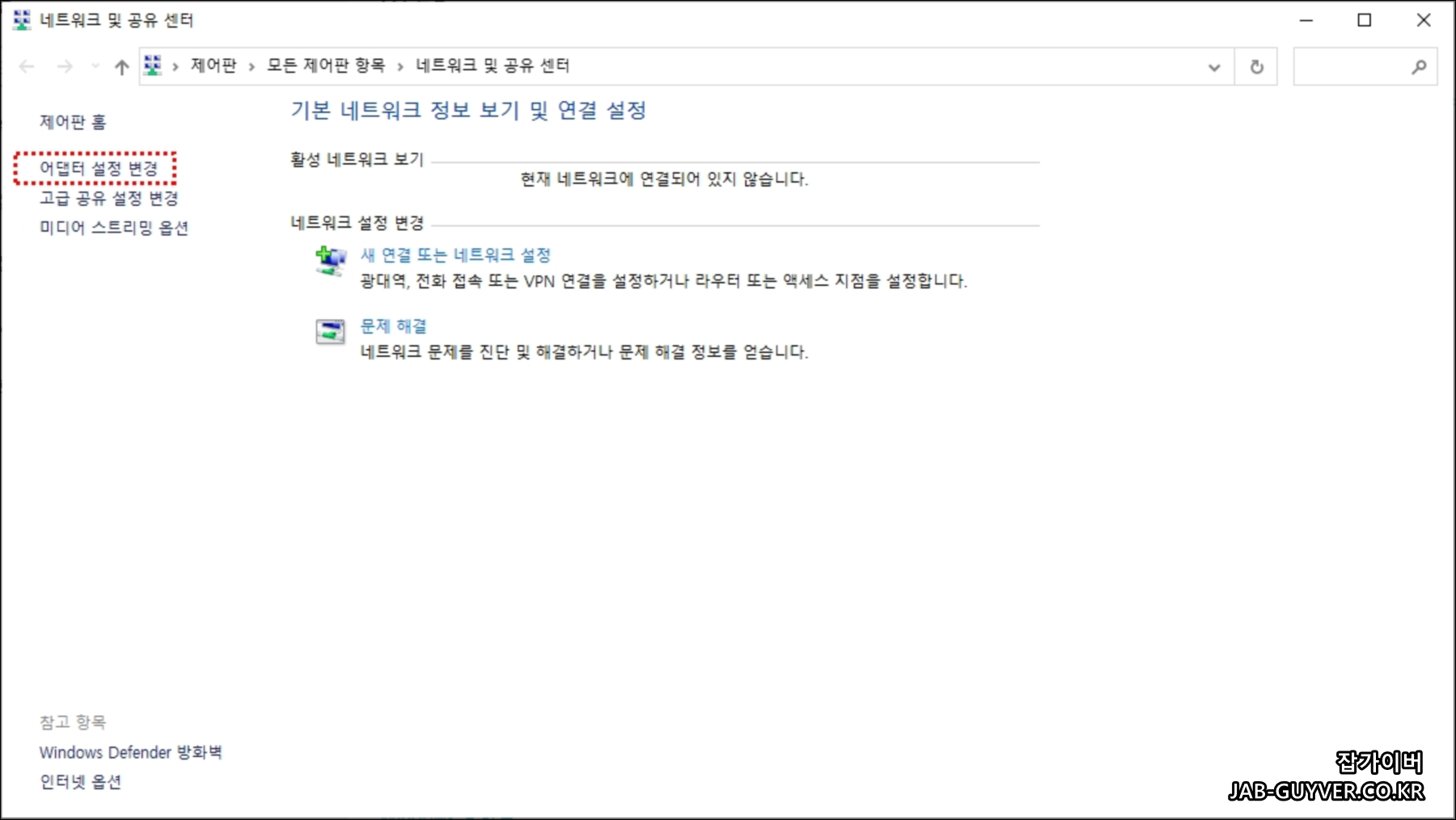 이후 어댑터 설정 변경으로 들어갑니다.