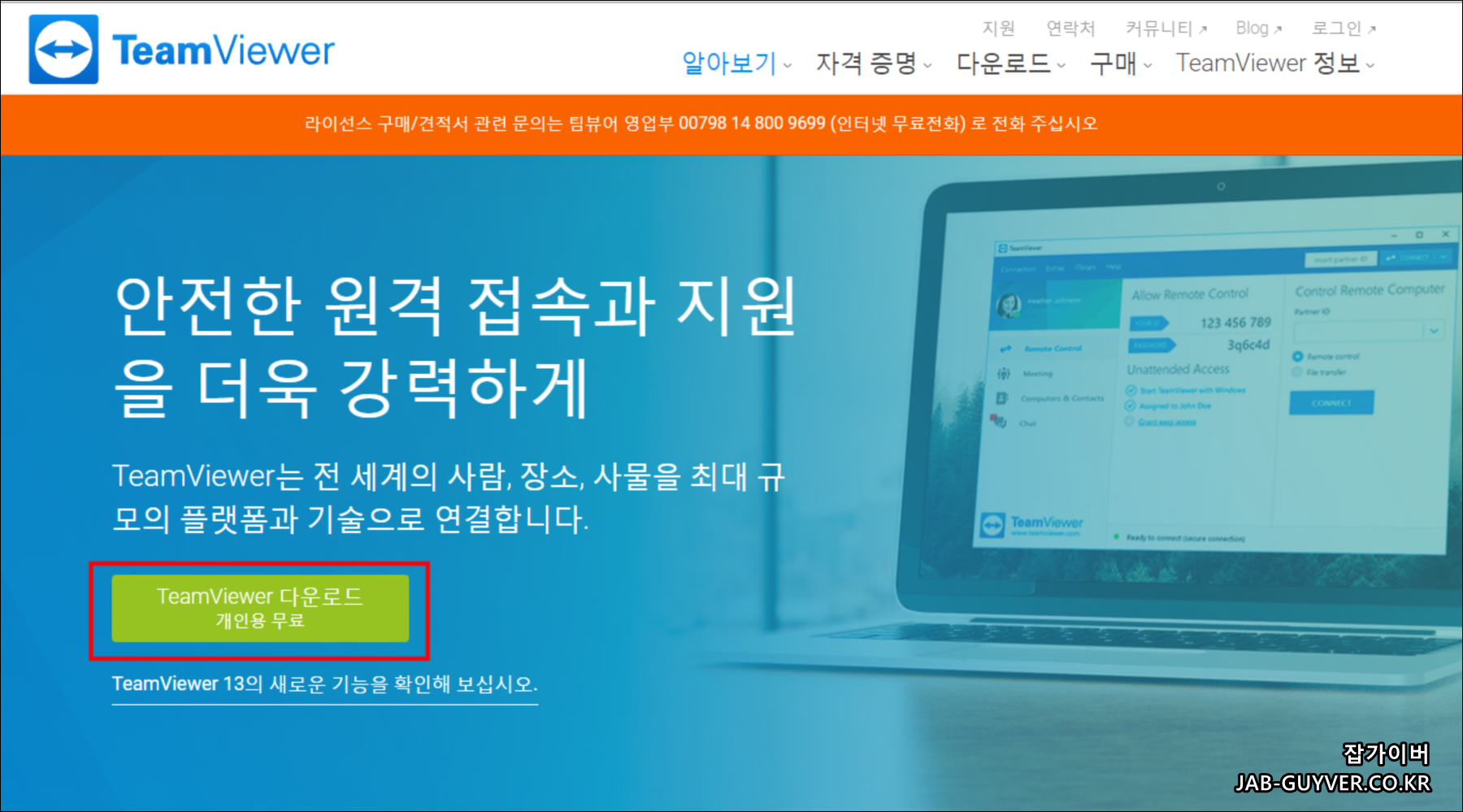 컴퓨터원격제어 프로그램 팀뷰어 다운로드