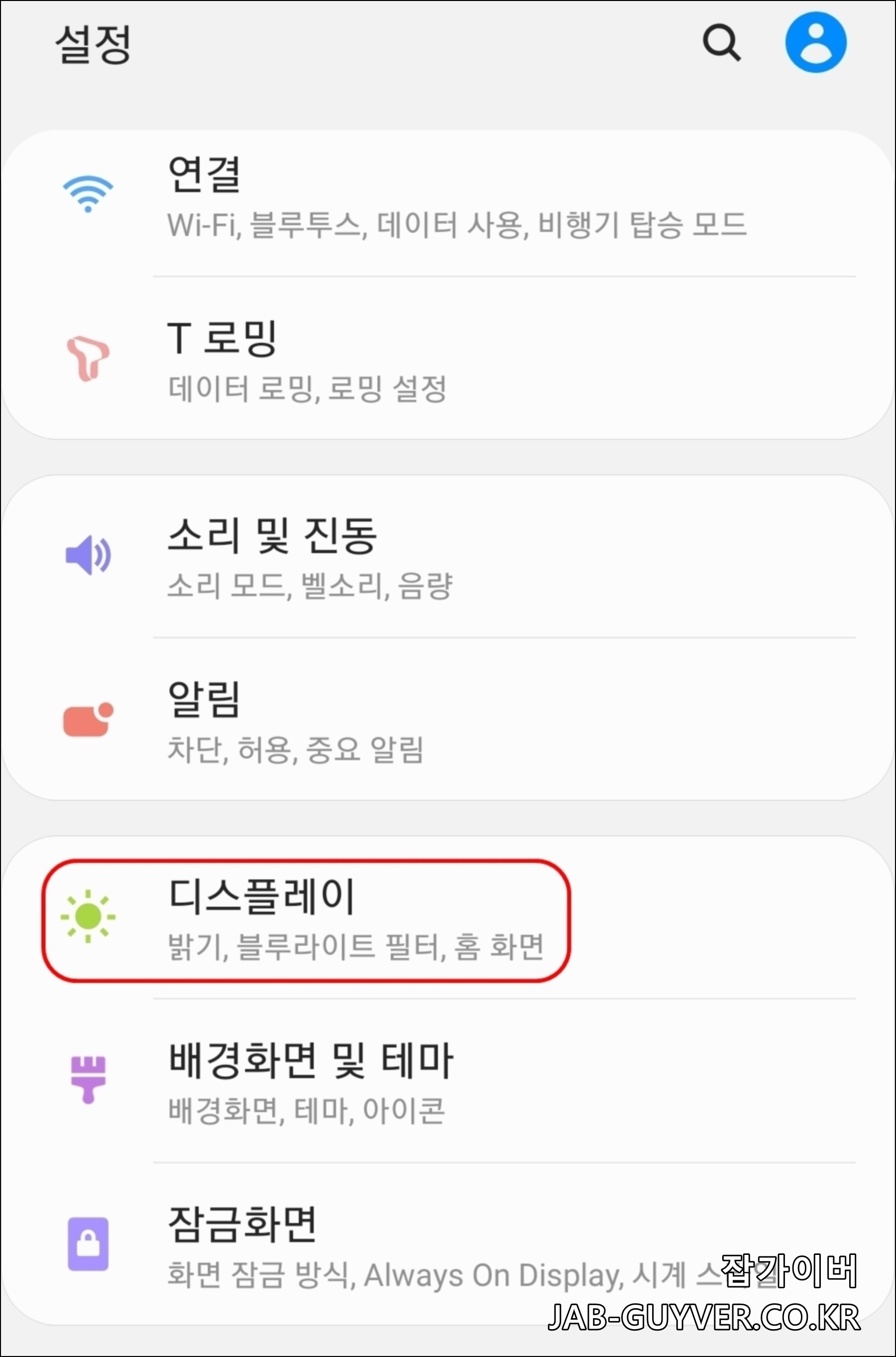 갤럭시 설정 -> 디스플레이로 들어갑니다.