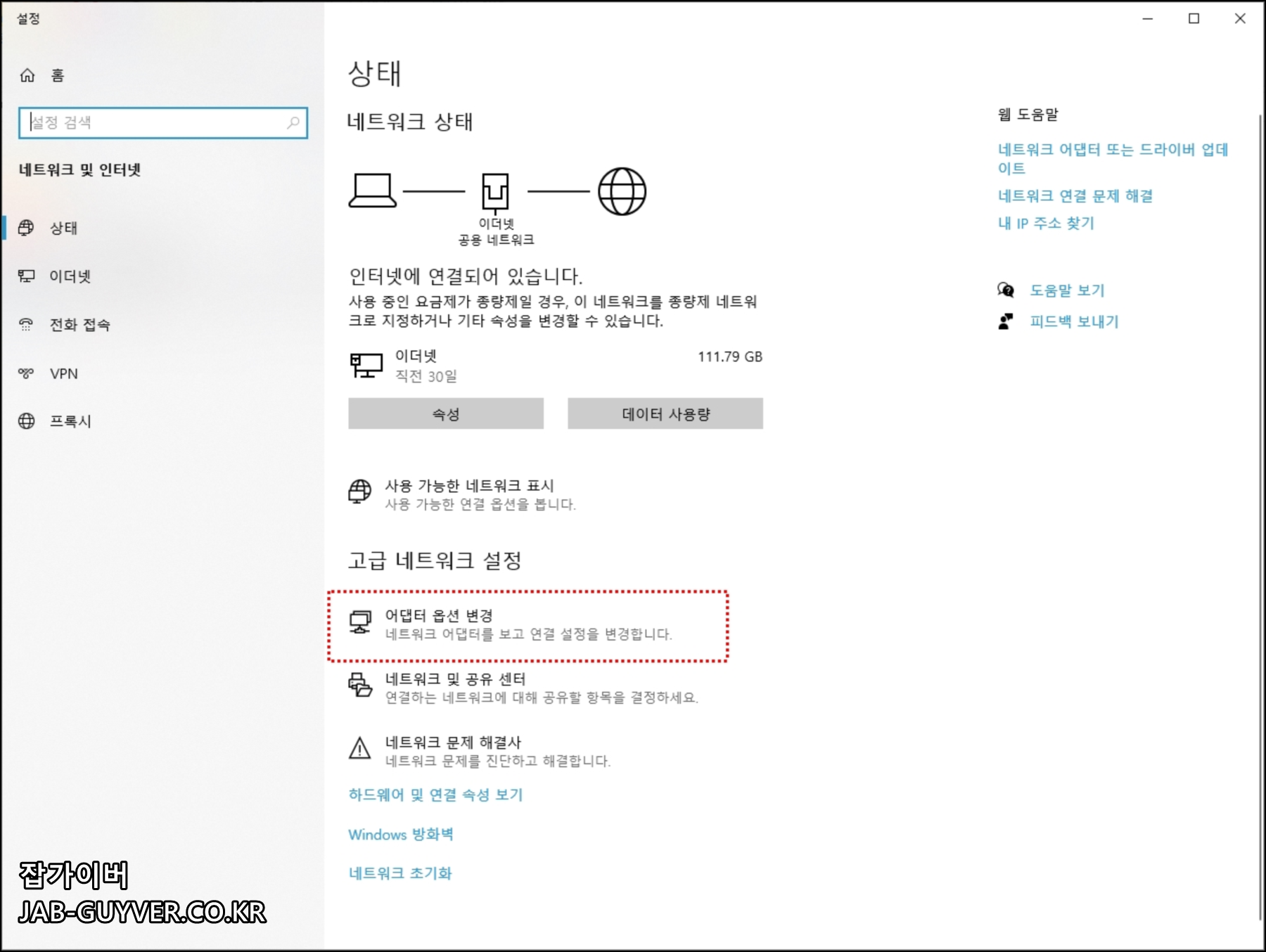 노트북 인터넷 연결 랜카드 우선순위 변경 - 윈도우10