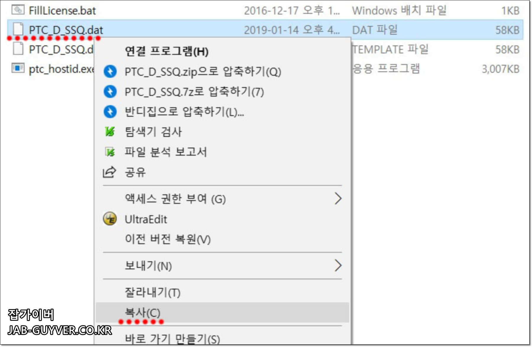 PTC_D_SSQ.dat 파일을 복사합니다.