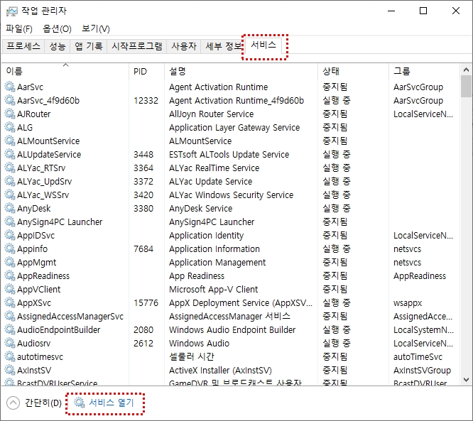 - 그래도 윈도우11 시작버튼이 먹통이 된다면 서비스탭으로 이동합니다.