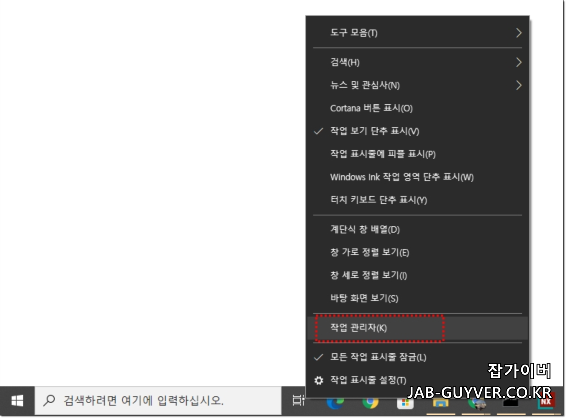가장 흔히 작업관리자를 실행하는 방법입니다.