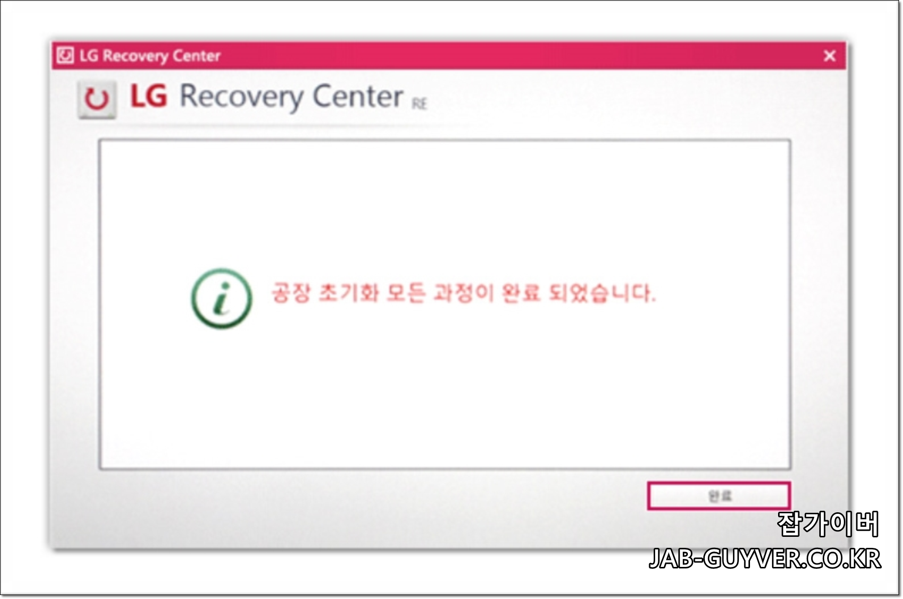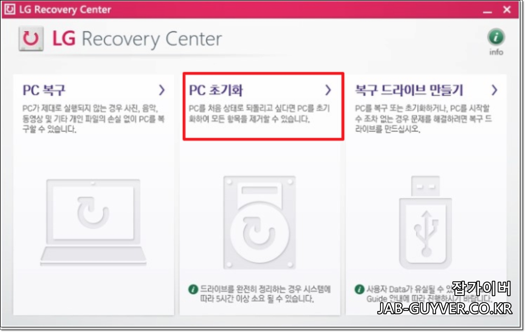 LG Recovery Center는 노트북 버전마다 조금씩 다를 수 있지만 크게 다르지 않습니다.