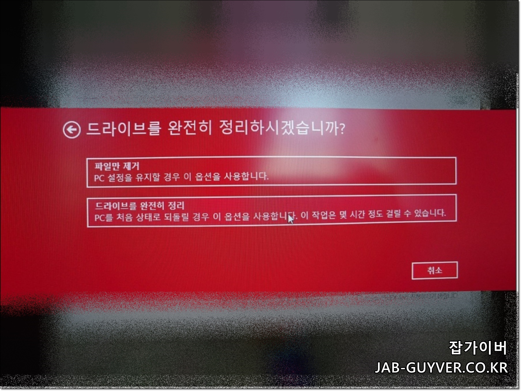 - 드라이브를 완전히 처음 상태로 초기화